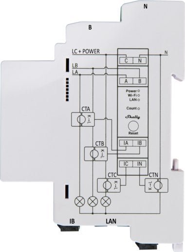 Лічильник електроенергії Shelly двосторонній – PRO 3EM 120A WiFi (M0000083)