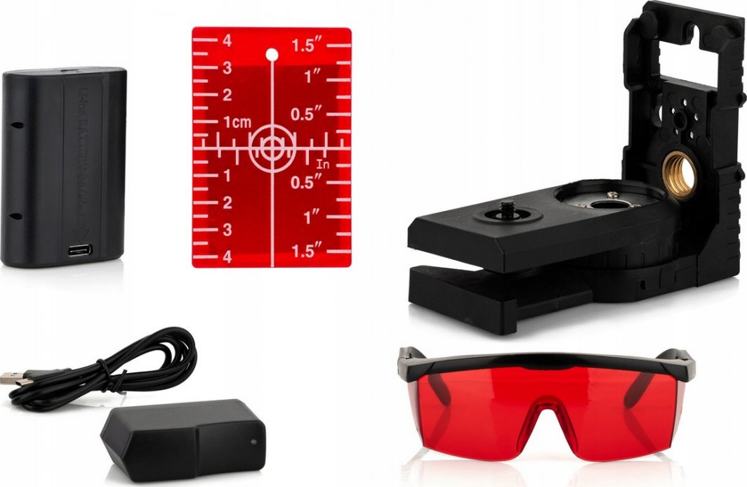 SMART365 06-03015R 360′ red cross-line laser Стандартна комплектація: акумулятор, USB зарядний пристрій, USB 3.0 – USB type C кабель, міцний кейс для транспортування, ручка, мішень, окуляри Характеристики продукту: Лазер використовується для внутрішніх оздоблювальних робіт.Виконує будівельно-ремонтні та оздоблювальні роботи.Поперечний лазер випромінює промені в трьох площинах.Кожен з діапазоном 360 градусів і червоним кольором.Одна горизонтальна балка і дві вертикальні балки, що перетинаються під кутом 90 градусів.Є 4 режими роботи на вибір: 1 горизонтальний промінь, 1 вертикальний промінь, 2 вертикальних променя, 1 горизонтальний промінь і 2 вертикальних променя. Проекція променя на 360 градусів дозволяє відображати промінь по всій кімнаті.На відміну від лінійних лазерів, немає необхідності обертати пристрій, усуваючи помилки нівелювання, пов’язані з необхідністю переміщення лазера.Комфорт використання приладу визначається його компактною конструкцією та функцією самовирівнювання в діапазоні 3°.Маятниковий фіксатор додатково захищає пристрій під час транспортування та дозволяє використовувати функцію відображення діагональної лінії.Утримуйте кнопку «OUT» протягом 3 секунд із заблокованим маятником.Імпульсна функція, призначена для використання з приймачем лазерного променя, завдяки якій можна збільшити радіус дії лазера (опція, детектор не входить в комплект).Чутливі сенсорні кнопки знижують ризик переміщення лазера при перемиканні режимів.Знімний літій-іонний акумулятор ємністю 2800 мАг забезпечує до 8 годин роботи на одному заряді.Зарядка відбувається за допомогою зарядного пристрою на 2000 мА, підключеного за допомогою універсального кабелю з портом USB-C.Зарядний пристрій оснащений діодом, який показує стан зарядки.Лазер можна ввімкнути без батарейки за допомогою джерела живлення, що входить до мережі.Ступінь захисту IP54 захищає пристрій від пилу та вологи.У набір входить тримач з магнітом і різьбою ¼ і 5/8 дюйма, сумісний з більшістю доступних штативів і розширювальних полюсів.Мішень і окуляри покращують видимість лазерного променя на великих відстанях або в яскраво освітлених приміщеннях.Гумові елементи захищають пристрій від пошкоджень, викликаних ударами або ударами. Все упаковано в міцний транспортний футляр, наповнений відповідним поролоном, який фіксує та захищає елементи набору під час транспортування та зберігання.Технічні дані: Індекс: SM-06-03015R Точність вимірювання: 3 мм / 10 м Діапазон вирівнювання: ± 3° Напрямок лінії: 2x вертикальний, горизонтальний Кількість променів: 3 Робочий діапазон: 15 м Лазерний діод: 630-670 нм червоний Клас лазера: 2 Живлення: батарея Різьба штатива: 1/4 дюйма Час роботи: до 20 год. Ступінь захисту: IP54