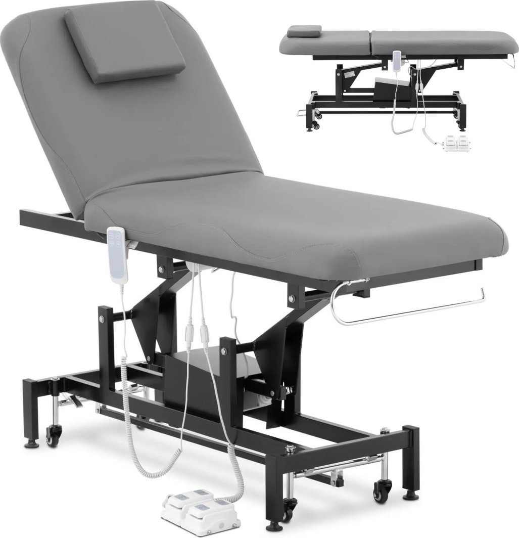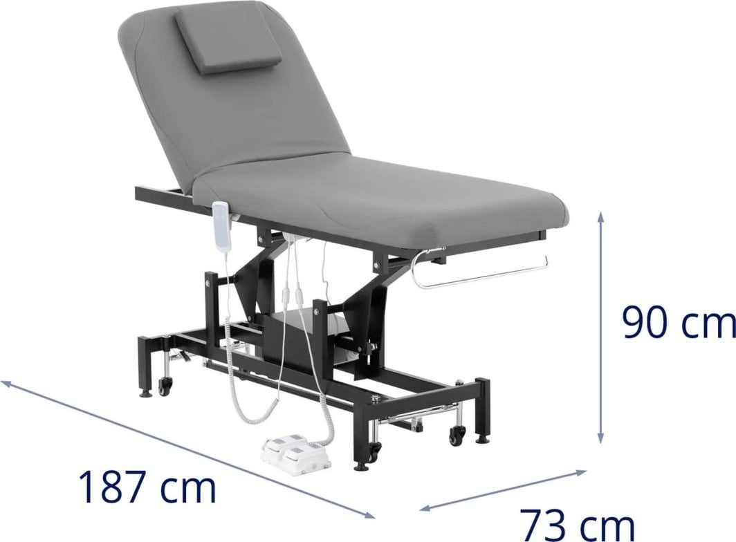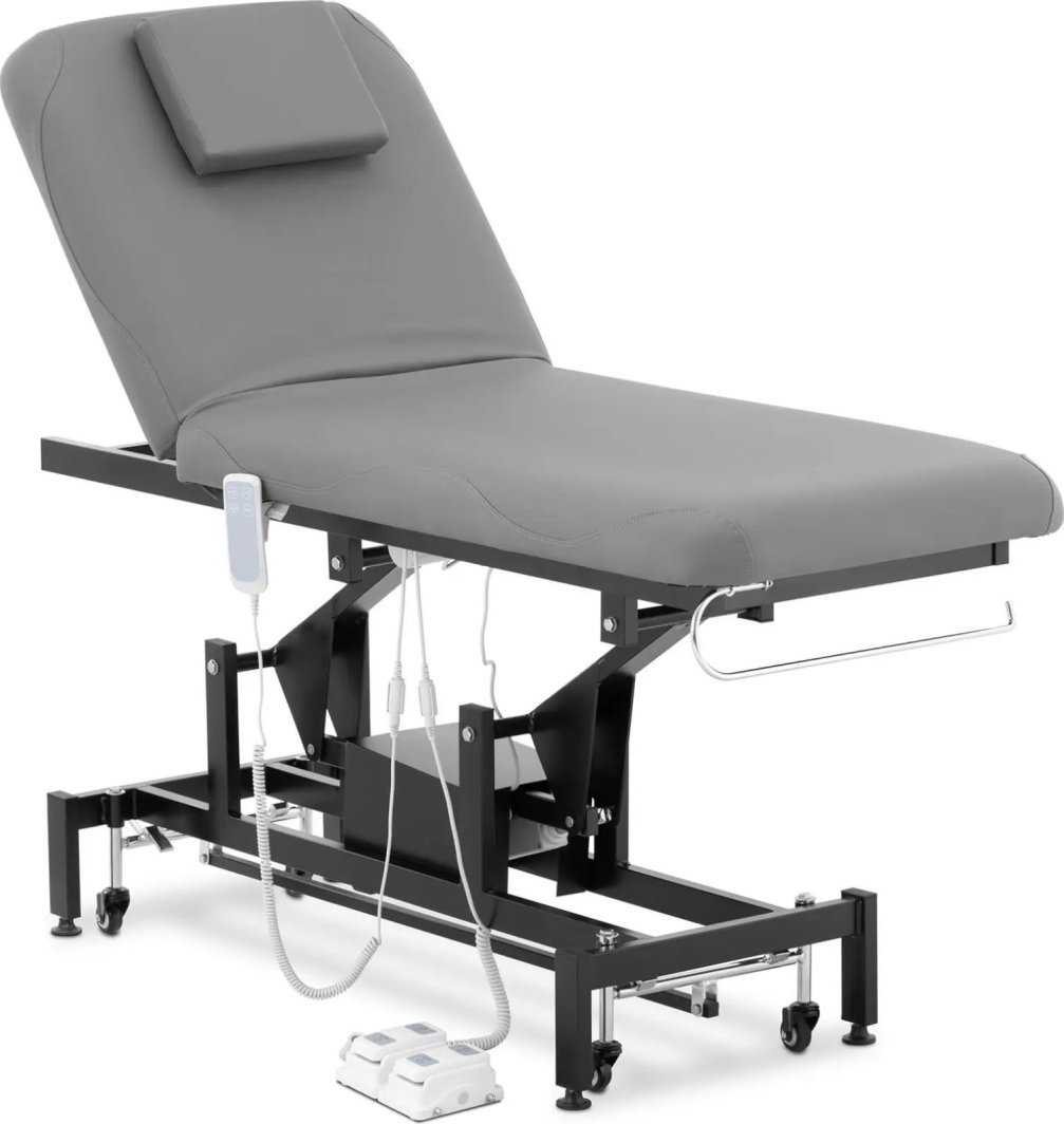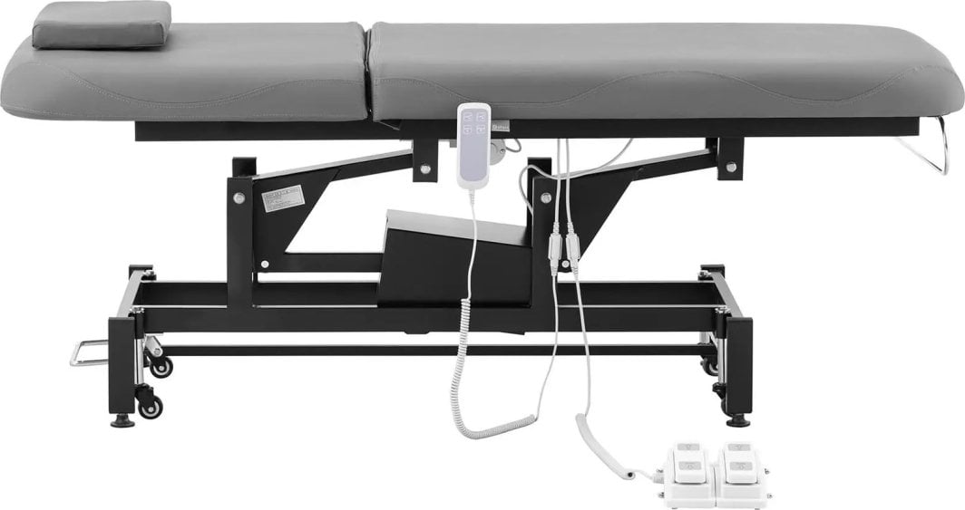 Код виробника: 10040523 Ліжко для масажу physa з регульованою висотою – це ідеальне обладнання для офісу, студії або спа та оздоровчого центру.Особливо підходить для фізіотерапевтів, масажистів або косметологів.Міцна конструкція, регульований кут нахилу спинки та ергономіка роблять його ідеальним для потреб як клієнта, так і терапевта.Ліжко гарантує зручне положення спини та чудове розслаблення.Масажний стіл характеризується дуже міцною конструкцією з хорошою стійкістю, оснащений пультом дистанційного керування, ножною педаллю та тримачем для рулону паперу.Електричний стіл має два двигуни загальною потужністю 50 Вт. Його можна індивідуально регулювати на висоту 680-900 мм.Крім того, спинка нахиляється до 60°.Це допоможе вам знайти найкращі умови для ваших клієнтів і співробітників.Сидяче або лежаче положення регулюється за бажанням залежно від типу лікування.Підголівник має знімну подушку.Завдяки спіненому наповненню оббивки різної товщини (сидіння: 100 / спинка: 80 / подушка: 40 мм) і приємному синтетичному шкіряному чохлу запропоноване масажне ліжко є надзвичайно зручним і гарантує високий комфорт протягом усього лікування.Завдяки використаній екошкірі масажний стіл легко і швидко миється.Чохол не вбирає рідину та пил.Високоякісна сталь з порошковим покриттям і стійка конструкція роблять цей масажний стіл міцним і забезпечують максимальну вантажопідйомність 200 кг.Чотири колеса можна використовувати для пересування ліжка, якщо це необхідно.Додаткову зручність забезпечують тримачі для пульта і рулону паперу.Характеристики виробу: – Міцна сталева конструкція витримує навантаження до 200 кг, – Щільне наповнення (сидіння: 100 / спинка: 80 / подушка: 40 мм) забезпечує оптимальний комфорт лежачи та сидячи, – Робоча висота в діапазоні 680-900 мм і спинка до 60° можуть бути оптимально відрегульовані, – Поверхня виготовлена з легкого очищення екошкіра, – Ліжко легко пересувається завдяки встановленим колесам.Технічні параметри: – Номер за каталогом – 10040523 – Стан товару – Новий – Модель – PHYSA LYON GRAY_PH – Матеріал – Сталь з порошковим покриттям – Колір – Чорний, Сірий – Напруга [В] – 230 – Кількість двигунів – 3 (висота, кут нахилу спинки та кут сидіння) – Ступінь захисту IP – IPX0 – Потужність [Вт] – 50 – Стіл/ліжко розміри [см] – 187 x 73 x (68-90) – Розміри сидіння [мм] – 1140 x 730 – Матеріал оббивки – Екошкіра – Розміри спинки [мм] – 715 x 730 – Товщина оббивки [мм] – Сидіння: 100 / спинка: 80 / подушка: 40 – Діапазон регулювання кут нахилу спинки [°] – 60 – Розміри підголівника [мм] – 400 x 280 x 50 – Колеса – Так – Максимальне навантаження – 200 кг – Розміри (ДxШxВ) – 187 x 73 x 90 см – Вага – 62,6 кг – Розміри транспортування (ДxШxВ) – 188 x 77 x 73 см – Вага брутто – 81 кг У комплекті: – Масажне ліжко – Інструкція з експлуатації