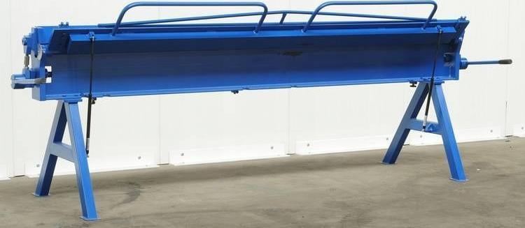 ЗГИБАЛЬНИЙ ВЕРСТАТ, ЗГИБАЛЬНИЙ ВЕРСТАТ, ПОКРІВЕЛЬНИЙ ЗГИБАЛЬНИЙ ВЕРСТАТ ДЛЯ ЛИСТОВОГО МЕТАЛУ З РІЗКОМ MAAD ZG-3000 / 1 мм Згинальний верстат ZG-3000/1.0 – це варіант верстату для обробки плоских листів довжиною до 3 метрів!!Він оснащений трьома циліндрами, що піднімають притискну балку, і двома циліндрами, що піднімають згинальну балку, що дає їй дуже широкі робочі можливості.Виготовляється в основному для листових цехів і компаній, які займаються вентиляцією і працюють з листовим металом довжиною до 3000 мм.Отримання таких робочих параметрів листозгинального верстата можливо завдяки використанню міцних і довговічних (товщиною 35 мм!) бічних механізмів і значно збільшеним перерізам робочих балок.Додатково бічні механізми мають латунні втулки з прямою мастилом в кожному обертовому елементі, що збільшує термін служби пристрою.Завдяки високому підйому притискної балки (до 100 мм!), згинальний верстат корисний при виготовленні вентиляційних каналів.Можливість співпраці з циркулярними ножицями підвищує його функціональність.Технічні параметри/обладнання: – робоча ширина – 3100 мм – макс.товщина гнутого листа – 1,0 мм (для Rm – ширина згинальної балки – 30 мм – максимальний кут згинання – 135 градусів (за бажанням можливе виконання з кутом згинання 155 градусів) – зазор між балками – 85-100 мм – вага верстата – 700 кг – знімні ніжки – значно полегшують транспортування і навантаження – рама встановлена ззаду верстата для підтримки листа – калібри для різання листового металу – стандартне обладнання – два газові балони, що підтримують підйом згинальної балки – три газові балони, що підтримують підйом притискної балки Розміри машини: висота – 1150 мм, ширина – 3580 мм, глибина – 1000 мм Основними робочими елементами згинального верстата є балки: нерухомі, тискові та згинальні кріплення листа в Підйом і опускання здійснюється за допомогою важеля. Верхня частина притискної балки є напрямною для циркулярних ножиць Цей параметр впливає на радіус вигину листа, а його розмір також залежить від товщини гнутого листа.