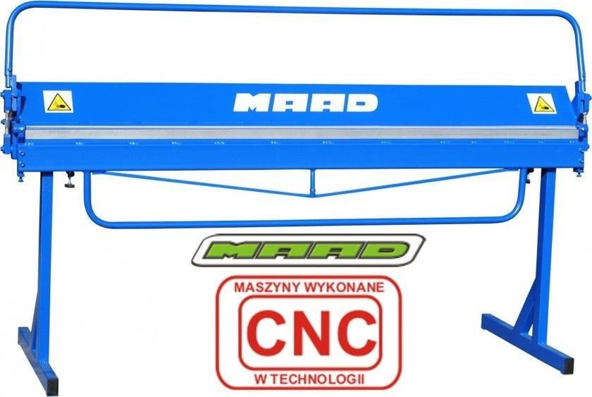 ЛИСТОЗГИБАЛЬНА МАШИНА MAAD ZGL-2000/0.7 ЛЕГКА – ПОРТАТИВНА ВЕРСІЯ Нова конструкція верстата MAAD ZGL-2000/0.7 дозволила отримати дуже малу вагу пристрою 149 кг при збереженні високих робочих параметрів.Спеціально відфрезерований налив на притискній балці дозволяє згинати листовий метал на кут 155°.Великою перевагою гибочного верстата ZGL-2000/0,6 є його універсальність у виконанні робіт з листовим металом і можливість їх виконання однією людиною за допомогою притискної ручки, розташованої по всій довжині верстата.Вузький гнучий брус (15 мм) дає впевненість у виконанні багатьох складних покрівельних робіт!Згинальні верстати MAAD використовують такі компанії, як BLACHOTRAPEZ, RUUKKI, FAKRO, тобто компанії, тісно пов’язані з покрівельною промисловістю!Згинальний верстат MAAD ZGL-2000/0.7 – це машина компактної конструкції, проста у використанні, створена в основному для покрівельників.Функціональний і надійний у використанні, він гарантує безвідмовну роботу без деформації робочих елементів.Вузька гнуча балка дозволяє виконувати складні роботи з листового металу.Технічні параметри/оснащення: робоча ширина – 2100 мм макс.товщина листового металу, який потрібно зігнути – 0,7 мм (для Rm<400MPa) ширина згинальної балки - 15 мм максимальний кут згинання - 155 градусів вага машини - 149 кг знімні ніжки - вони значно полегшують транспортування та завантаження складна рама, розташована в задній частині машини для підтримки вимірювальних приладів для різання листового металу транспортир, що дозволяє точно визначити згинання листа кутовий газовий привід, що підтримує підйом згинання балки Може працювати однією людиною!Розміри верстата: висота - 1100 мм, ширина - 2320 мм, глибина - 800 мм.Притискна балка - це рухома балка, яка використовується для фіксації листового металу в потрібному положенні.Піднімається і опускається за допомогою важеля.Газовий привод підтримує підйом натискної балки.Притискна балка сконструйована таким чином, що її верхня частина служить напрямною для циркулярних ножиць.Операція згинання виконується обертанням згинальної балки на певне кутове значення за допомогою ручки.Транспортир, встановлений з лівого боку гибочного верстата, якщо дивитися спереду, показує поточний кут згинання листового металу.Згинальна балка регулюється по висоті порівняно з фіксованою балкою.Цей параметр впливає на радіус вигину листа металу і його розмір також залежить від товщини гнутого листа металу.Елементи листозгинального верстата виготовляються на точних верстатах з ЧПК.Згинальний верстат покритий подвійним шаром високоякісної фарби - процес фарбування виконується в професійному малярному цеху з опаленням і вентиляцією.