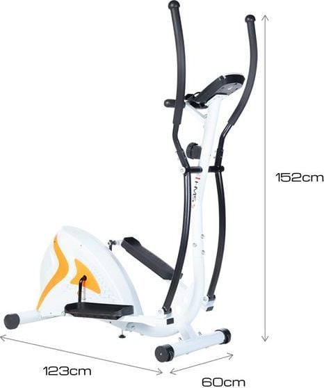 Магнітний еліптичний тренажер H2205 Еліптичний тренажер H2205 – ідеальне рішення для людей, які шукають компактне обладнання, яке займає мало місця.Опір регулюємо ручкою.Вправи дуже тихі, тому не заважають оточуючим людям.На дисплеї комп’ютера відображаються найважливіші дані про тренування, включаючи пульс, який можна виміряти за допомогою сенсорних датчиків на ручках. Додатковою перевагою є сталеві полози, оснащені зручними нековзкими ніжками.Параметри Клас використання: H Тип опору: внутрішнє магнітне Тип регулювання опору: ручне Кількість рівнів регулювання опору: 8 Вага маховика (кг): 6 Датчики вимірювання пульсу: є Місце для мобільного пристрою: є Вирівнювальні ніжки: є Ролики або транспортувальні колеса: є Вага виробу: 32,5 кг Максимальна вага користувача: 120 кг Комп’ютер (вимірювання): час відстань швидкість пульс калорій температура навколишнього середовища СКАНУВАННЯ Розміри еліптичного тренажера (в розкладеному стані): довжина (см): 123 ширина (см): 60 висота (см): 152