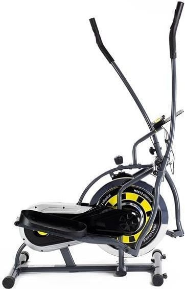 Еліптичний тренажер H6512 Еліптичний тренажер HMS H6512 – це високоякісне обладнання, яке прослужить вам довго.Це допоможе вам зменшити вагу тіла, спалити жирову тканину, а також допоможе сформувати та зміцнити м’язи.Працюють м’язи рук, ніг, сідниць, живота і спини.Насолоджуйтесь тихою роботою пристрою. Модель H6512 має систему опору, засновану на механізмі тиску, який передбачає натискання на повстяний блок опору.Опір легко регулюється – за допомогою ручки.Цей тип також відрізняється тихою роботою, тому не заважатиме іншим домочадцям і відмінно підійде для домашнього затишку.Функціональний комп’ютер Пристрій також має функціональний комп’ютер, який відображає інформацію про час тренування та калорії.Сенсорні датчики вимірювання пульсу відображають інформацію про частоту серцевих скорочень, що дозволяє контролювати ефективність вашого тренування – чим вищий пульс, тим більше калорій спалено.Зручність у поєднанні з безпекою Модель H6512 також характеризується комфортом і безпекою.Протиковзкі ніжки запобігають ковзанню, а стійкість обладнання впливає на комфорт використання.Поручні регулюються по висоті, що дозволяє налаштувати пристрій під свої вподобання.Покриття їх м’якою ергономічною губкою підвищує рівень комфорту.Транспортувальні колеса – це перевага, яка дозволить вам легко переміщати пристрій!Специфікація: розміри: 923x613x1326 мм Довжина кроку: 369 мм Відстань між педалями: 240 мм Вага: нетто: 30 кг, брутто 32 кг Вага маховика: 7 кг Максимальна вага користувача: 110 кг Комп’ютер: сканування – сканування, час – час, швидкість – швидкість, відстань – відстань, калорії – калорії, одометр – загальна відстань, пульс – пульс батарейки: 2xAAA в комплекті
