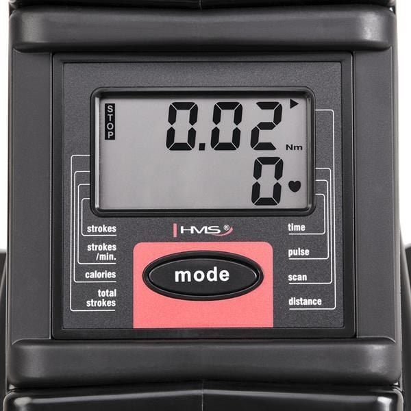 ZM1901 HMS ZM1901 – міцний, простий у використанні виріб з 8-рівневою шкалою регулювання навантаження, яка дозволяє підлаштовувати вправи під свої можливості.Навантаження регулюється великою ручкою.Вся необхідна інформація про тренування, в тому числі: кількість ударів, час і дистанція, виводиться на панель, розташовану над регулятором опору.Модель ZM1901 – міцна конструкція, безсумнівною перевагою якої є можливість складання.Це економить багато місця.Завдяки транспортним коліщаткам ми легко розмістимо його в зручному місці.Гребний тренажер також оснащений опорами для ніг спереду.Цей елемент дозволяє використовувати виріб для більшої кількості вправ, задіявши додаткові групи м’язів.Гребний тренажер або гребний ергометр – це чудовий спосіб спалити жирову тканину та розвинути витривалість і силу.Цей вид аеробних вправ задіює практично все тіло і гарантує приголомшливі результати.Позитивно впливає на роботу кровоносної і дихальної системи, зміцнює серцевий м’яз.ZM1901 HMS – надійне, повне переваг обладнання, яке дозволить підняти вашу фізичну форму на вищий рівень.ТЕХНІЧНІ ХАРАКТЕРИСТИКИ: Тип опору: внутрішнє магнітне Діапазон навантаження: 1-8 Тип регулювання опору: ручне Вага маховика: 8 кг Комп’ютер: Час: так Кількість ударів: так Кількість ударів за хвилину: так Відстань: так Швидкість: немає Пульс: так Калорії: так Сканування: так Тип дисплея: LCD Розміри дисплея: 77 x 43 мм Додаткове обладнання: Телеметрія Приймач ременя: є Підставки під ноги спереду: є Транспортувальні ролики: є Розміри в розкладеному стані: Довжина: 195 см Ширина: 58,5 см Висота: 49 см Розміри в складеному стані: Довжина: 126 см Ширина: 58,5 см Висота: 122,5 см Максимальна відстань сідла від стійок: 114 см Максимальна вага користувача: 120 кг Вага виробу: 33 кг