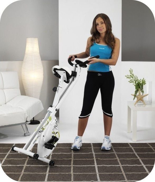 Велосипед: Як використовувати: домашнє тренування Розміри: 117 x 39 x 68 см (В x Ш x Д) Розміри в складеному вигляді: 130 x 39 x 28 см (В x Ш x Д) Вага: 15 кг Макс. вага користувача: 90 кг Маховик: 8 кг Магнітна система опору 8-ступенева вертикальна настройка сідла Ручне регулювання опору Транспортувальні колеса Комп’ютер: Швидкість Дистанція Час Калорії Велотренажер з магнітною системою опору BH Tecnovita – це пристрій, який зробить вашу фігуру стрункішою, схудне, покращить фізичну форму та кровообіг.Транспортні колеса полегшують перенесення, а можливість складання дозволяє істотно заощадити місце.Вісім рівнів регулювання опору пристрою дозволяють регулювати тренування в залежності від вашого індивідуального рівня розвитку.Комп’ютер дозволяє переглядати та аналізувати хід тренувань.На його дисплеї безпосередньо відображається така інформація, як: поточна швидкість, пройдена відстань або спалені калорії.Заняття на велотренажері, безумовно, є одним з найпопулярніших видів фізичних вправ вдома.Перш за все, це ефективно, приємно і комфортно.Такі тренування задіюють велику групу ваших м’язів, дозволяючи вашому тілу спалювати жир, стрункувати фігуру та зміцнювати ноги, покращувати кровообіг, фізичний та психічний стан.