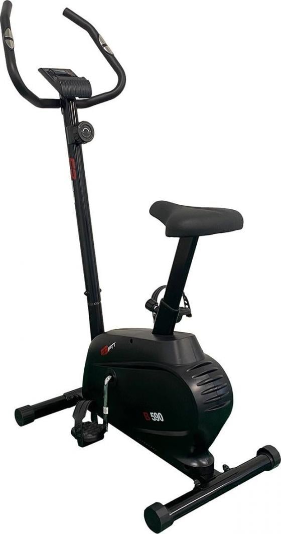 Магнітний велотренажер B590 Магнітний маховик масою 4 кг 8 рівнів навантаження, які регулюються за допомогою механічної ручки Комп’ютер, що відображає основні функції, такі як час, відстань, калорії, швидкість і пульс Вертикально регульоване сідло Розміри – 86 x 128 x 51 см Вага нетто/брутто – 19,5 кг / 22 кг Максимальна вага користувача – 110 кг