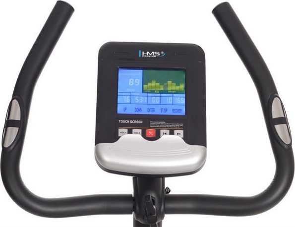 Велотренажер M9239P HMS Магнітний велотренажер M9239 Premium є електронною версією моделі M9239.Модель Premium ще міцніша та міцніша.Оснащений маховиком 9 кг і комп’ютером з дисплеєм “Touch Panel”.Комп’ютер підраховує і відображає всі найважливіші параметри тренування, в тому числі: час, дистанцію, пульс.Додатковою перевагою моделі Premium є те, що вона оснащена роз’ємами MiniJack і USB, за допомогою яких можна підключати мобільні пристрої, такі як телефон або планшет.Маховик з відповідною великою вагою, регульоване сидіння, педалі з регульованими ременями – ось елементи, які впливають на задоволення і комфорт тренувань на цьому пристрої.Технічні дані: опір: магнітне, зовнішнє автоматичне регулювання опору вага маховика: 9 кг 16 рівнів навантаження регульоване кермо регульоване сидіння: вертикально (від сидіння до землі): 81-100 см, з кроком 3 см по горизонталі 7 см відстань від сидіння до педалей по діагоналі: 72-90 см вимірювання пульсу за допомогою сенсорних датчиків транспортні колеса вага пристрою: 24,5 кг допустима вага користувача: 120 кг Розміри пристрою: 93 х 54,5 х 128,5 см Функції комп’ютера: час, швидкість, дистанція, витрачені калорії, вимірювання пульсу, роз’єми WATT MiniJack, USB – можливість підключення мобільного пристрою програми навчання: 10 автоматичних 1 ручна 1 WATT 4 HRC 4 користувач 1 вимірювання рівня жиру