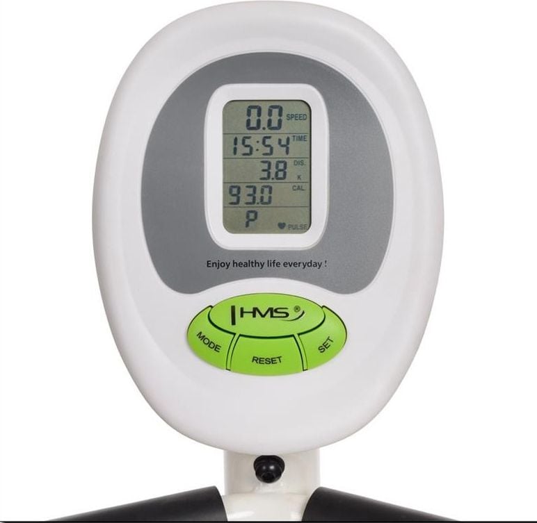 Горизонтальний магнітний велотренажер HMS R9259 Модель R9259, завдяки своїй горизонтальній конструкції, призначена для маломобільних людей і людей похилого віку.Ці типи велотренажерів також використовуються як обладнання для реабілітації.Характерною особливістю лежачих велосипедів є зручне регульоване сідло та зручні підлокітники.Переваги Основними перевагами представленої моделі є надзвичайно зручне сідло, яке регулюється і дозволяє виконувати вправи в напівлежачому положенні.Крім регульованого сідла, є можливість індивідуального регулювання педалей, які оснащені спеціальними ременями, що утримують ноги.Велосипед використовує базовий комп’ютер, який відображає всю найважливішу інформацію на чіткому та зручному дисплеї.Тренуйтеся, як хочете і коли хочете. Незважаючи на горизонтальну конструкцію, велосипед також ідеально підходить для досвідчених користувачів.Восьмирівневе регулювання навантаження гарантує пристосування інтенсивності тренувань до власних фізичних налаштувань.Використання магнітного опору гарантує виключно тиху роботу всього комплекту.Це особливо сподобається людям, які проживають у багатоквартирних будинках або мають маленьких дітей.Розміри 142 x 65 x 98 см (Д x Ш x В) Вага 28,5 кг Максимальна вага користувача 120 кг Гальмівна система Магнітна вага маховика 9 кг Регулювання опору Ручне, 8-ступінчасте Регулювання сідла Так, вертикальне та горизонтальне Педалі з ремінцями Так + протиковзка поверхня Безшумна кришка маховика Так Транспортні ролики Так Функції комп’ютера Час, швидкість, відстань, Калорії, Вимірювання пульсу Вимірювання пульсу Сенсорні датчики Живлення комп’ютера Батарейки 2xAA