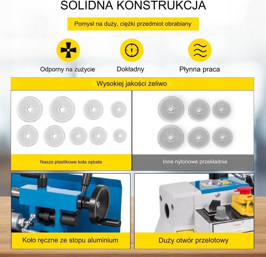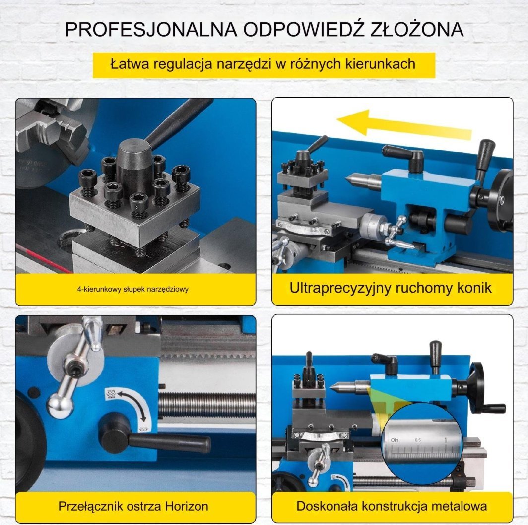 Міні-настільний токарний верстат для металу 550 Вт – Ефективність і точність у вашій майстерні. Настільний токарний верстат MIni для металу 550 Вт – це невеликий, але надзвичайно ефективний пристрій, який точно виправдає очікування як любителів, так і професіоналів.Завдяки відмінній якості виготовлення та сучасній технології цей токарний верстат забезпечує точну обробку металу, що робить його ідеальним інструментом для моделювання та підготовки зразків.Міцна конструкція з високоякісного заліза Настільний токарний верстат MIni виготовлений із міцного заліза надзвичайно міцний і стійкий до зношування.Його конструкція забезпечує стабільність під час роботи та дозволяє обробляти довгі та тонкі елементи завдяки нахилу 17,8 см над станиною та відстані між центрами 35 см. Плавне регулювання швидкості від 50 до 2500 об/хв Токарний верстат оснащений безступінчатим регулюванням швидкості, що дозволяє адаптувати його роботу до різних матеріалів.Користувач може встановити швидкість від 50 до 2500 об / хв, що підвищує універсальність пристрою.Крім того, токарний верстат працює як в прямому, так і в зворотному напрямку, що підвищує його функціональність.Прецизійний 3-кулачковий патрон для стабільного затискання 3-кулачковий патрон у верстаті MIni Bench Lathe забезпечує стабільне затискання циліндричних заготовок.Завдяки конструкції з самоцентруванням точність затиску становить до 0,01 мм, що гарантує високу точність при обробці.Широко використовується для обробки точних деталей Міні-токарний верстат ідеально підходить для точної обробки металу, що робить його ідеальним інструментом для внутрішнього, торцевого та косого різання.Завдяки своїй універсальності пристрій добре впорається як у любителів, так і у професійних майстрів.Технічні характеристики MIni Bench Lathe for Metal 550 W Потужність двигуна: 550W DC однофазний Плавне регулювання швидкості: 50-2500 об/хв Діаметр патрона: 100 мм Відстань між осями: 350 мм Отвір шпинделя: 21 мм Дюймове різьблення: 12-52 T.P.I Метричне різьблення: 0,5-2,5 мм Вага виробу: 40 кг Розміри пристрою: 69,9 × 21,7 × 29,7 см Замовляйте зараз, щоб насолодитися найкращою продуктивністю у своїй майстерні!Ідеально підходить для ваших потреб – доступний сьогодні в Morele!