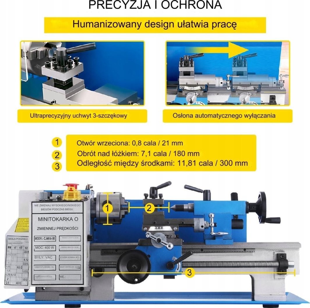 Міні-токарний верстат для металу та дерева 400 Вт – ідеальний інструмент для точної обробки. Міні-токарний верстат по металу та дереву потужністю 400 Вт – чудове рішення для тих, хто шукає точний інструмент для обробки.Виготовлений з високоякісної сталі, він забезпечує не тільки довговічність, але й стійкість до зношування, що робить його ідеальним вибором як для домашніх майстерень, так і для професійних студій.Міцна сталева конструкція для довговічності Міцна, високоякісна сталева конструкція забезпечує довговічність пристрою.Завдяки нейлоновим шестерням токарний верстат забезпечує максимальний захист і надійність під час роботи, що є вирішальним для досягнення найкращих результатів обробки.Безступінчасте регулювання швидкості – налаштуйте під свої потреби Міні-токарний верстат оснащений безступінчатим регулюванням швидкості, що дозволяє регулювати швидкість в діапазоні від 50 до 2250 об / хв.Завдяки цьому користувач може легко регулювати швидкість відповідно до типу матеріалу та специфіки виконуваної роботи.Точний 3-кулачковий патрон для стабільності матеріалу Токарний верстат має точний 3-кулачковий самоцентруючий патрон, який забезпечує стабільне затискання оброблюваних матеріалів.Завдяки точним конічним роликовим підшипникам пристрій гарантує точність 0,01 мм, що необхідно для складних проектів.Широко використовується в метало- та деревообробці. Міні-токарний верстат ідеально підходить для обробки точних деталей, моделювання та робіт, пов’язаних зі свердлінням, фрезеруванням, нарізанням різьби та нарізанням різних елементів.Завдяки потужному двигуну пристрій можна використовувати в багатьох програмах, що робить його надзвичайно універсальним інструментом.Технічні характеристики Mini Lathes for Metal and Wood 400 W Бренд: Vevor Код виробника: 0618-3BMNCC000001V2 Призначення: для металу EAN (GTIN): 5907021403863 Напруга: 220V 50Hz Потужність двигуна: 400W Тип двигуна: Матовий Фаза: Однофазний Змінна швидкість шестерня: пластиковий нейлон Сертифікація: CE Поворот над ліжком: 180 мм Відстань між осями: 300 мм Точність шпинделя: 0,01 мм Швидкість шпинделя: 50 – 2250 об/хв.Отвір шпинделя: 21 мм Конічний хвостовик: MT2 Конус шпинделя: MT3 Хід верхнього ковзанка: 35 мм Поперечний хід: 65 мм Вага нетто: 46,5 кг Розміри елемента (Д x Ш x В): 69,9 x 22,9 x 29,2 см Комплектація: міні-токарний верстат, ключ для патрона, гайкові ключі, губки патрона, нейлон шестерні, маслянка, шестигранні ключі, мертва точка, патрон, захисна маска, накладки для ніг, набір інструментів, інструкція користувача.Замовляйте зараз, щоб насолодитися найкращою продуктивністю!Ідеально підходить для ваших потреб – доступний сьогодні в Morele!