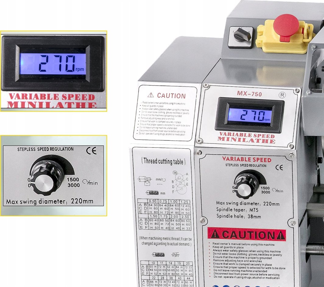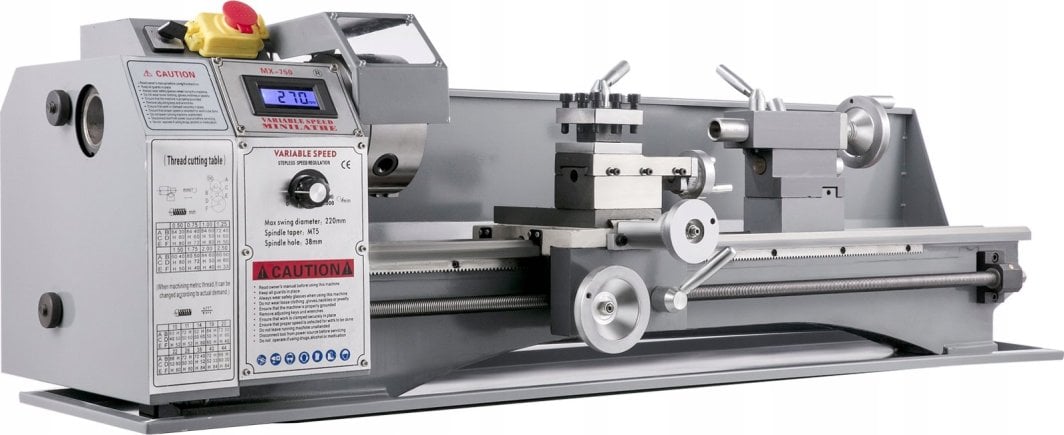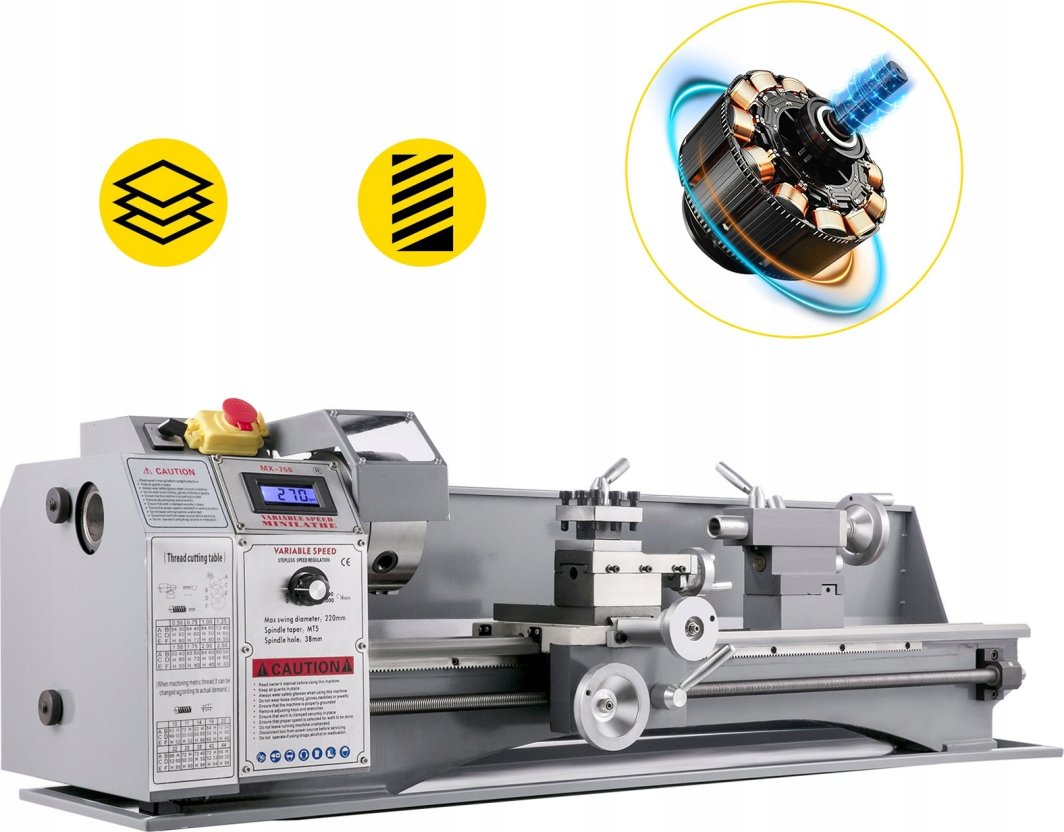 Міні-токарний верстат по металу з 3-кулачковим патроном 1100 Вт – ідеальний інструмент для точної обробки металу. Міні-токарно-фрезерний верстат потужністю 1100 Вт – чудове рішення для тих, хто шукає точний інструмент для обробки металу.Завдяки своїй універсальності цей пристрій добре впорається як з професіоналами, так і з любителями.3-кулачковий патрон і конуси шпинделя MT5 і MT2 забезпечують токарну роботу, свердління, нарізання різьби та нарізання з найвищою точністю.Висока потужність і змінна швидкість Токарний верстат потужністю 1100 Вт забезпечує чудову продуктивність і ефективність при обробці різних матеріалів.Регульована швидкість обертання шпинделя в діапазоні від 50 до 2250 ± 10% об/хв дозволяє налаштовувати робочі параметри під конкретні завдання.Світлодіодний екран полегшує відстеження поточної швидкості, що підвищує комфорт використання.Міцна чавунна конструкція для тривалої роботи. Міні-токарний верстат, виготовлений із високоякісного чавуну, характеризується винятковою довговічністю та зносостійкістю.Така конструкція забезпечує стабільність під час роботи, що є вирішальним для досягнення точних результатів.Завдяки міцній конструкції прилад прослужить довго навіть при інтенсивному використанні.Універсальність застосувань – токарна обробка, свердління, нарізка різьби. Міні-токарно-фрезерний верстат – це інструмент, який ідеально підходить для багатьох застосувань.З можливістю токарної обробки, свердління та різьблення це ідеальний вибір для людей, які займаються обробкою металу на різноманітних проектах.Незалежно від того, працюєте ви над дрібними деталями чи більшими елементами, цей пристрій задовольнить ваші вимоги.Просте управління завдяки 3-кулачковому патрону. 3-кулачковий патрон діаметром 125 мм забезпечує надійне затискання заготовок, що значно полегшує роботу.Завдяки цьому користувач може зосередитися на точній обробці, будучи впевненим, що матеріал належним чином захищений.Додатково токарний верстат оснащений перемикачем для зміни напрямку обертання шпинделя, що підвищує його функціональність.Технічні характеристики Mini Lathes Фрезерні верстати по металу 1100 Вт Потужність двигуна: 1100 Вт Напруга: 220 В 50 Гц Тип фази: Однофазна Поворот над станиною: 220 мм Відстань між осями: 750 мм Діаметр 3-кулачкового патрона: 125 мм Отвір шпинделя: 38 мм Точність шпинделя: 0,01 мм Змінна швидкість (RPM): 50-2250 ± 10% Imperial Thread Діапазон: 8-44 T.P.I.Діапазон поздовжньої подачі: 0,5-3 мм Матеріал шестерні: Метал Вага машини: 84 кг Розміри машини: 102,2 × 31,3 × 34,7 см Комплектація: 1 x токарний верстат по металу, 1 x центруюча опора, 1 x мертва точка MT2, 1 x масляний пістолет, 3 x губки, 6 x металеві шестерні, 1 x посібник користувача, 2 x викрутки, 1 x набір аксесуарів, 1 x ключ для патрона, 3 x гайкові ключі, 3 x губки патрона.Замовляйте зараз, щоб насолодитися найкращою продуктивністю в металообробці!Ідеально підходить для ваших потреб – доступний сьогодні в Morele!
