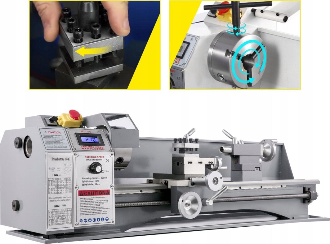 Міні-токарний верстат по металу з 3-кулачковим патроном 1100 Вт