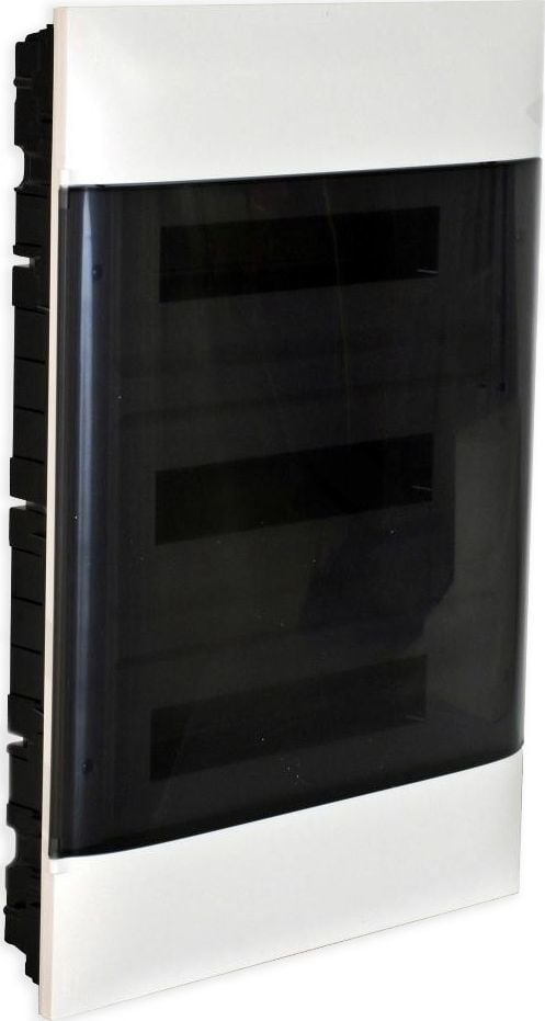 Електричний розподільний пристрій — це елемент електричної установки, що містить пристрої та компоненти, що використовуються для з’єднання, розриву та розділення електричних кіл та їх комбінацій (наприклад, автоматичний вимикач), найчастіше в поєднанні з: – пристроями керування (наприклад, контактор, реле) – захисними пристроями (наприклад, електричний запобіжник, автоматичний вимикач, пристрій захисного відключення, розрядник перенапруги), – вимірювальні пристрої (наприклад, трансформатор струму, лічильник електроенергії).Пристрій прихованого монтажу Practibox S – продукт найвищого класу, підтверджений репутацією бренду LEGRAND.Ключовою особливістю виробу є повністю знімна опорна конструкція.- Відповідність стандартам IEC/EN 60670-24 дозволяє створювати комплекти, сумісні зі стандартами IEC/EN 61439-3 – Рівень захисту IP 40 – IK 07 – Клас захисту II – Ізоляційний матеріал, самозатухаючий – 650C – Оснащений з’єднувальними планками N і PE – Для суцільних стін Комерційний код 137378 Тип для вбудованого монтажу розподільні щити Кількість рядів 3 Рейка TH35 (DIN) 3×18 PE/N N клеми: 2 x (1×25 мм² + 12×16 мм²);PE: 1 x (1×25 мм² + 34×16 мм²) Тип дверей прозорі, тоновані Кількість дверей 1 Тип замка Глибина установки 72 мм Кількість модулів 18 мм 54 Клас захисту від ударів II Ступінь захисту IP40 Ударостійкість IK07 Вогнестійкість (GWT) 650 °C Розміри (ширина × висота × глибина) 436 × 615 × 105 мм Розміри ніші (ширина x висота) 418 × 535 мм Стандарти IEC/EN 60670-24, PN-EN 61439-3 Гарантія 24 місяці