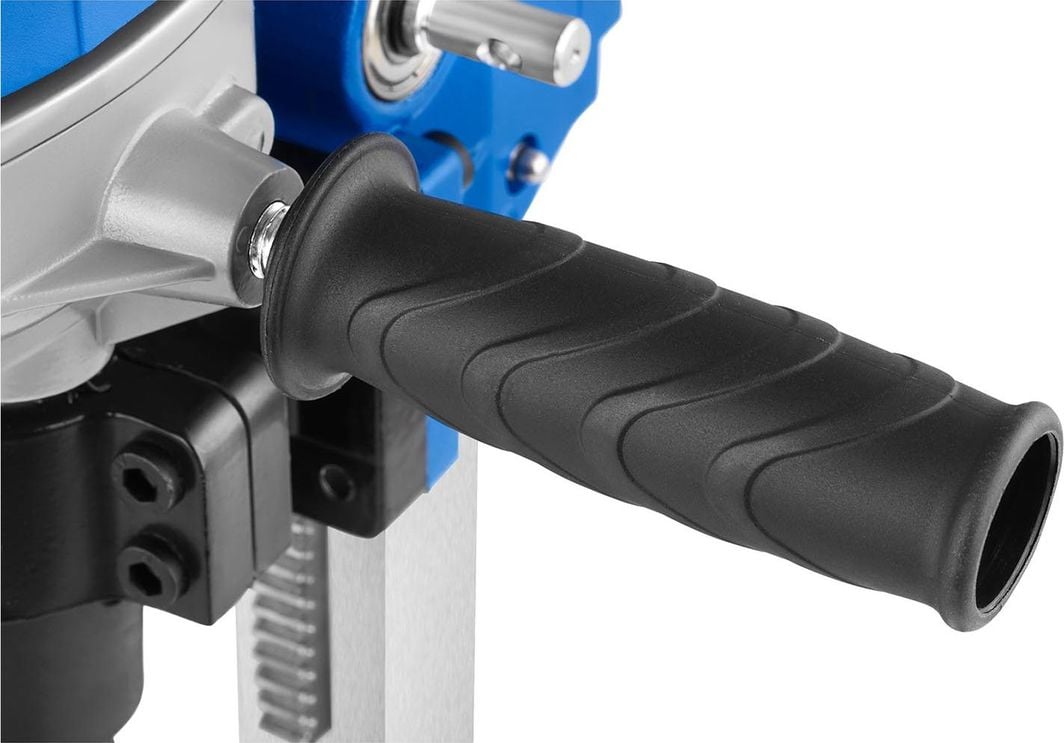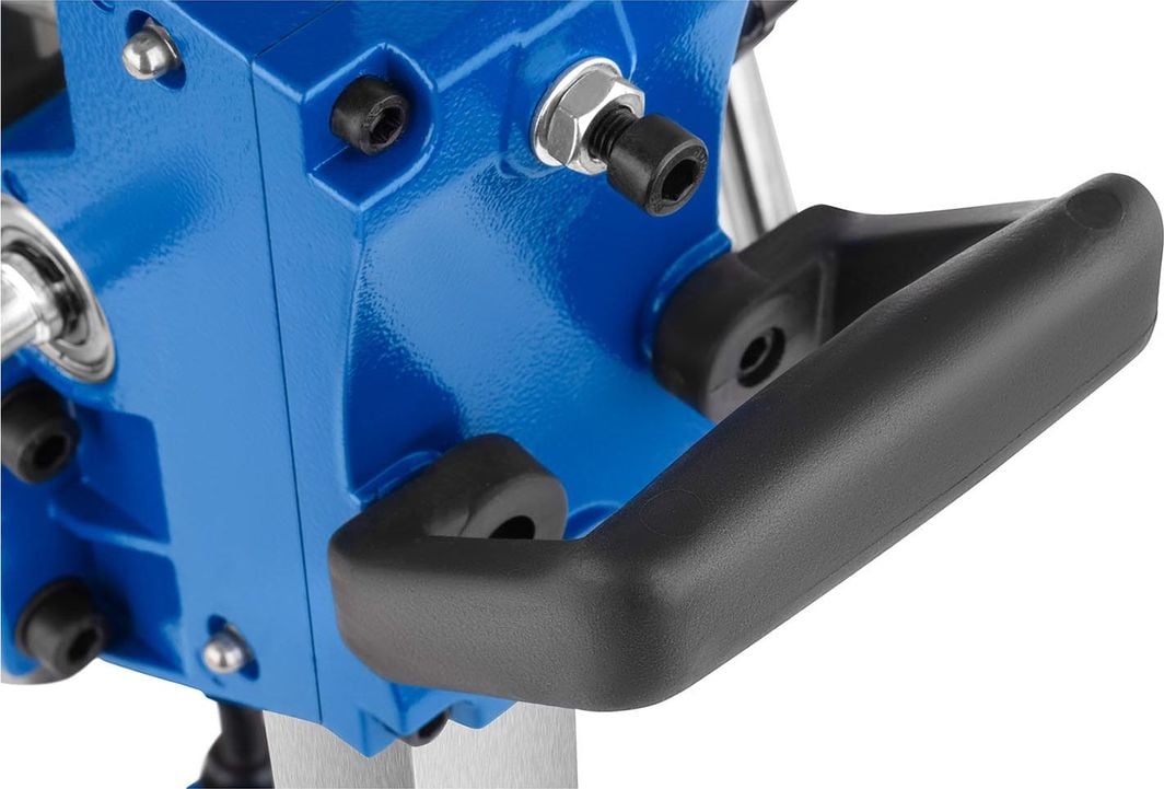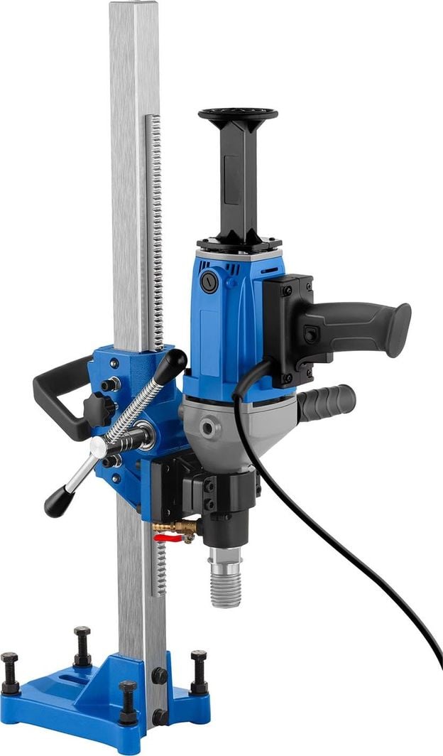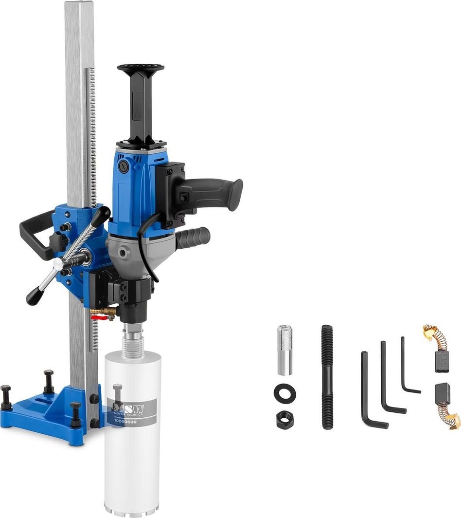 Номер виробника: MSW 10060437 Професійна бурова установка MSW-DDM152, завдяки міцній конструкції, підходить для обробки твердих матеріалів, таких як цегла, бетон або камінь.Двигун потужністю 2880 Вт гарантує ефективну роботу та швидкість свердління до 1200 об/хв.Зручна Т-подібна рукоятка дозволяє регулювати глибину свердління, а напрямна забезпечує плавне переміщення вгору і вниз в діапазоні 0 – 510 мм.Для підвищення ефективності роботи бурові установки оснащені спеціальним роз’ємом і шлангом, який можна підключити до зовнішнього пристрою, що відповідає за роботу вологих.Це продовжить термін служби шнурків і знизить ризик пошкодження оброблюваного матеріалу.Апарат підходить для алмазних коронок діаметром до 152 мм.Бурова установка також підходить для ручної роботи, просто від’єднайте її від основи.Завдяки розміщенню перемикача в ручці і встановленню спеціальної опори для руки, використання пристрою в цьому режимі комфортне.Для полегшення безперервної роботи також використовується блокування перемикача.Безпечну роботу на буровій установці забезпечує модуль PRCD (захисний пристрій), який запобігає ввімкненню машини в разі короткого замикання.Це також гарантує, що пристрій не запуститься неконтрольовано при підключенні до джерела живлення.Характеристики продукту: – Надійність – міцна конструкція дозволяє виконувати вологу та суху роботу, – Багатозадачність – можливість свердлити різні тверді матеріали, такі як цегла, бетон, залізобетон або камінь, – Універсальність – сумісність з алмазними свердлами діаметром до 152 мм, – Зручність – ручний режим, опора для руки, блокування перемикача – Безпека – вбудований модуль PRCD.У набір входить: – Бур по бетону – Водяний шланг 3,1 м – Поворотна ручка – Шестигранні ключі – 3 шт. – Задній направляючий тримач – Анкерний гвинт – Вугільні щітки – 2 шт. – Кабель живлення 3,2 м з модулем безпеки PRCD – EN інструкція