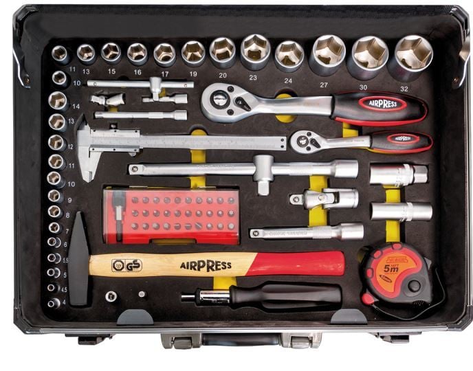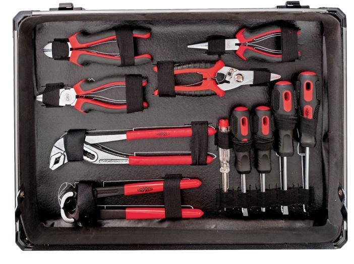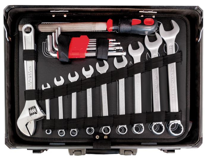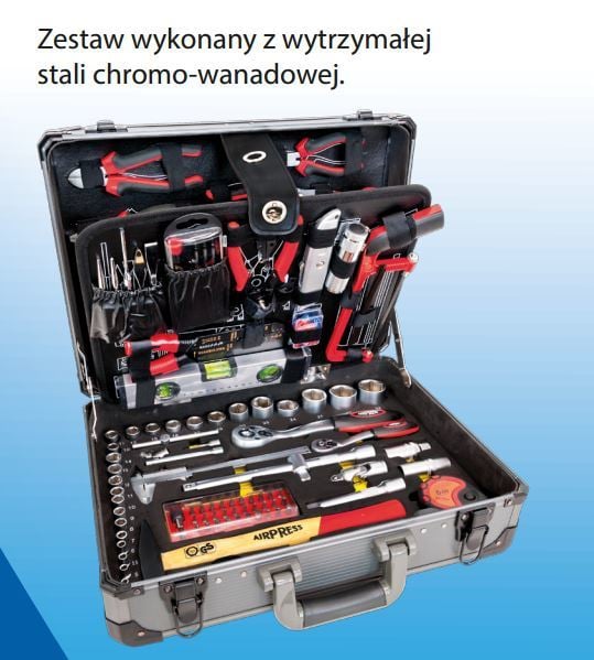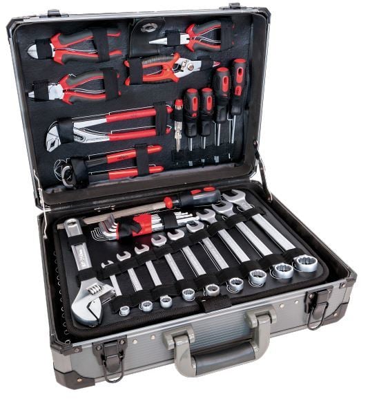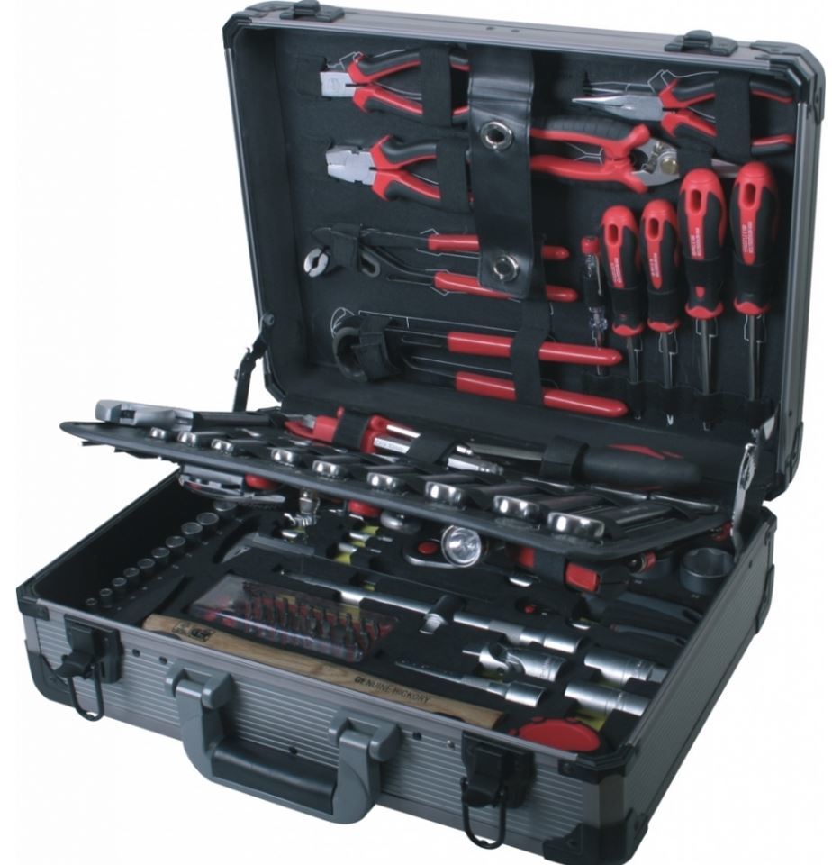 Набір інструментів 127 елементів, алюмінієвий кейс 75255 Тип Набір інструментів 127 елементів Професійний набір інструментів в алюмінієвому кейсі Набір із міцної хромованадієвої сталі Зміст: Модуль 1: – електричний тестер 220-250 В – набір з 4 викруток – регульовані плоскогубці 250 мм – комбіновані плоскогубці – бічні кусачки 175 мм – плоскогубці 175мм – ножиці ручні (універсальні) Модуль 2 – напилок – шестигранні ключі 9 шт від 1,5 до 10 мм – ключі ріжкові від 8 до 22 мм – ключ розвідний 250 мм Модуль 3 – пробійники/різці 5 шт – прецизійні викрутки з наконечником 3 шт – електрокусачки – стопорні щипці з 4 наконечниками – ніж з набором змінних лез – ліхтарик – ножівка з набором пильних полотен – ватерпас – наконечники для обтиску кабелю Модуль 4 – 1/4″ гнізда 13 шт від 4 до 14 мм – 1/2″ гнізда 13 шт від 10 до 32 мм – тріскачка 1/2″ і 1/4″ – 1/2″ подовжувачі 2 шт. – 1/2″ кульовий шарнір – 1/4″ подовжувачі 2 шт. – 1/4″ кульовий шарнір – 1/2″ ручка – 16 і 22 мм гнізда для свічок – вимірювальна стрічка – 300 г молоток – супорт – викрутка з тріскачкою з шарніром – набір біт з адаптером