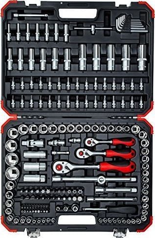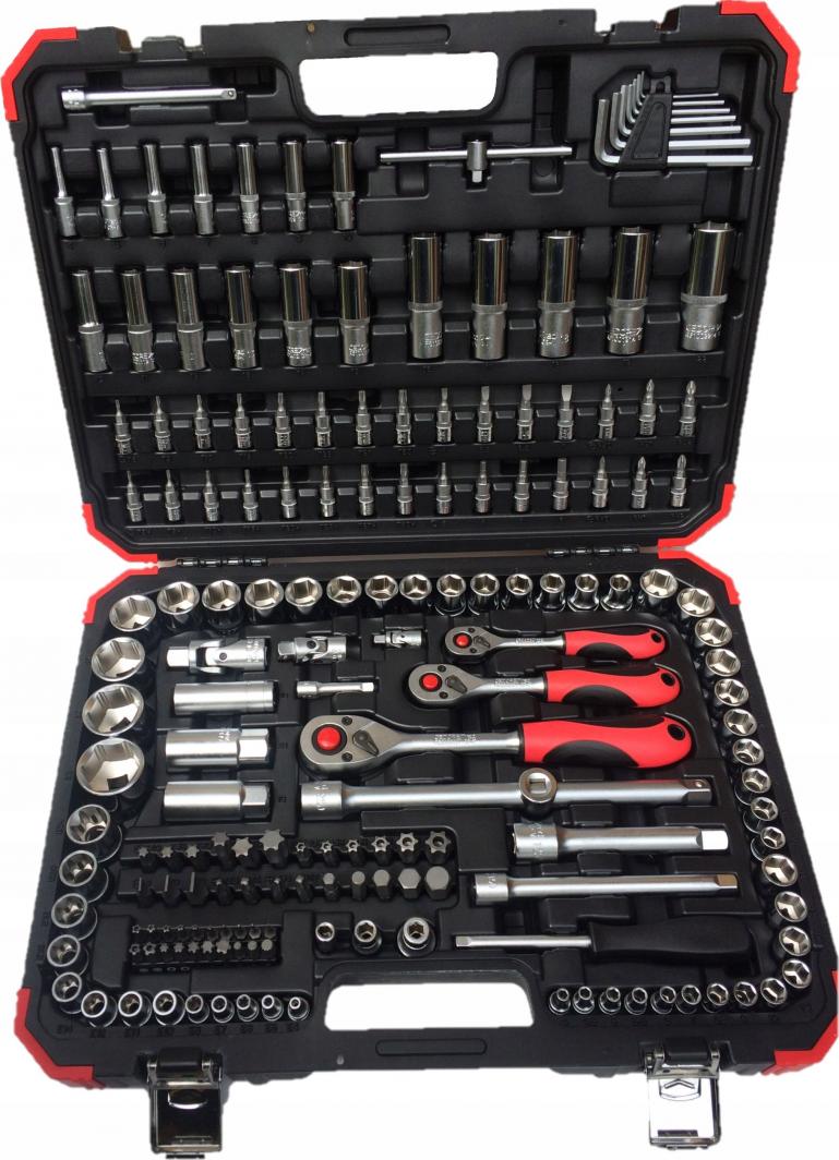 Gedore Набір торцевих ключів 1/4″ – 3/8″ – 1/2″, 172 шт. Характеристики Квадратне з’єднання згідно DIN 3120, ISO 1174, з кульковим замком Квадратний привід згідно DIN 3120, ISO 1174, з кульковим пазом 2K, тріскачка, обертання вправо/вліво за допомогою важеля, кнопковий розпуск, тонкий зуб, овальна головка, 2-компонентна рукоятка, зручна передача зусилля, для розеток Квадратна вставна ручка 1/4″, 1-компонентна з внутрішнім квадратом Набір ключів, 6-точкова, метрична, коротка версія відповідно до DIN 3124, ISO 2725 Набір ключів, 6-точкова, метрична, довга версія відповідно до DIN 3124, ISO 2725 Набір ключів, внутрішня гніздо для свічки запалювання TX 3/8″, з гумовою ручкою та додатковими шестигранний привід SW 21 Свічкова головка 1/2″ з гумовою ручкою. Свічкова головка 1/2″ з гумовою ручкою та додатковим шестигранним приводом SW 24. Набір гайкових ключів 1/4″, для внутрішніх 6-точкових гвинтів, з тисненим, фосфатованим хвостовиком. Набір ключів 1/4″, для шлицевих гвинтів, з тисненим, фосфатованим хвостовиком набір 1/4″, PH, з тисненим, фосфатованим хвостовиком. Набір ключів 1/4″, PZ, з тисненим, фосфатованим хвостовиком. Набір ключів гайкових 1/4″, TX, з тисненим, фосфатованим хвостовиком. Набір гайкових ключів 1/4″, TX, з отвором, фосфатований хвостовик. Т-подібний тримач з повзунком 1/4″, конструкція відповідно до DIN 3122, ISO 3315 Розширення торцевої головки 1/4″ + 3/8″ + 1/2″ Карданне з’єднання 1/4″ + 3/8″ + 1/2″, різьбове з’єднання, конструкція відповідно до DIN 3123 – C 12.5 Адаптер/повзунок для збільшення 3/8″ x 1/2″, для закручування торцевих ключів і насадок для викрутки. Адаптер для насадок 1/4″, із внутрішнім шестигранником і внутрішнім шестигранником, для всіх біт та інструментів із шестигранною головкою 1/4″. Адаптер для біт 3/8″ з внутрішнім шестигранником і внутрішнім шестигранником, для всіх біт і інструментів з головкою 5/16″. Адаптер 1/2″ із внутрішнім шестигранником та внутрішнім шестигранником, для всіх насадок та інструментів із зовнішнім шестигранником. Насадка 5/16″ 1/4″ TX, TX BO, TX security BO, шпонковий паз, XZN підходить для тримачів відповідно до DIN ISO 1173 – D 6.3 5/16″ насадка, шестигранна головка, проріз, PH, TX, TX BO підходить для тримачі відповідно до DIN ISO 1173 – D 8 Набір шестигранних шестигранних ключів, конструкція згідно DIN ISO 2936 Для ручного загвинчування Хромованадієва сталь, матовий хром Пластиковий футляр у червоному дизайні GEDORE Інструменти закріплені затискачем