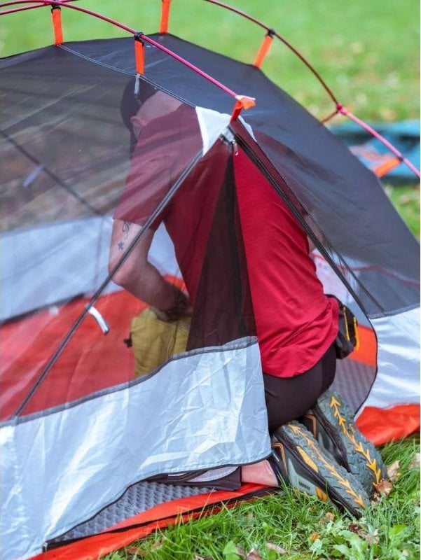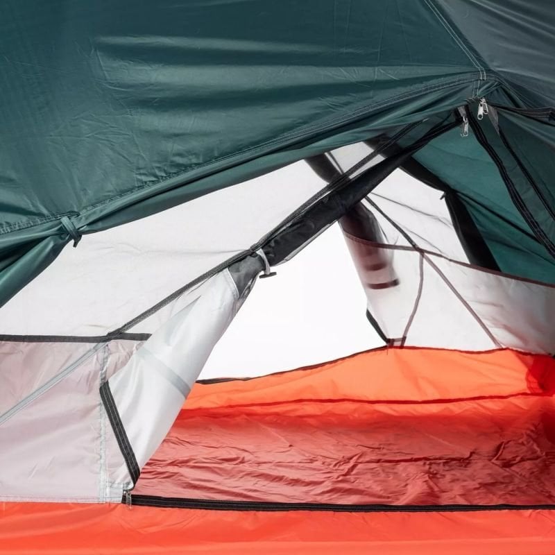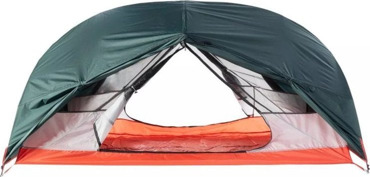 Властивості: Розміри: 210 x 135 + 60 x 100 см Розміри після упаковки: 55 x 15 см Вага: 2,4 кг Двомісний намет Проклеєні шви на щиті Два входи та два вестибюлі Структура типу іглу Технічні характеристики: Водонепроникний простір: 3000 мм H²O Водонепроникна підлога: 3000 мм H²O Flysheet: 100% поліестер Внутрішній матеріал: 100% поліестер Каркас: алюміній Підлога: поліестер