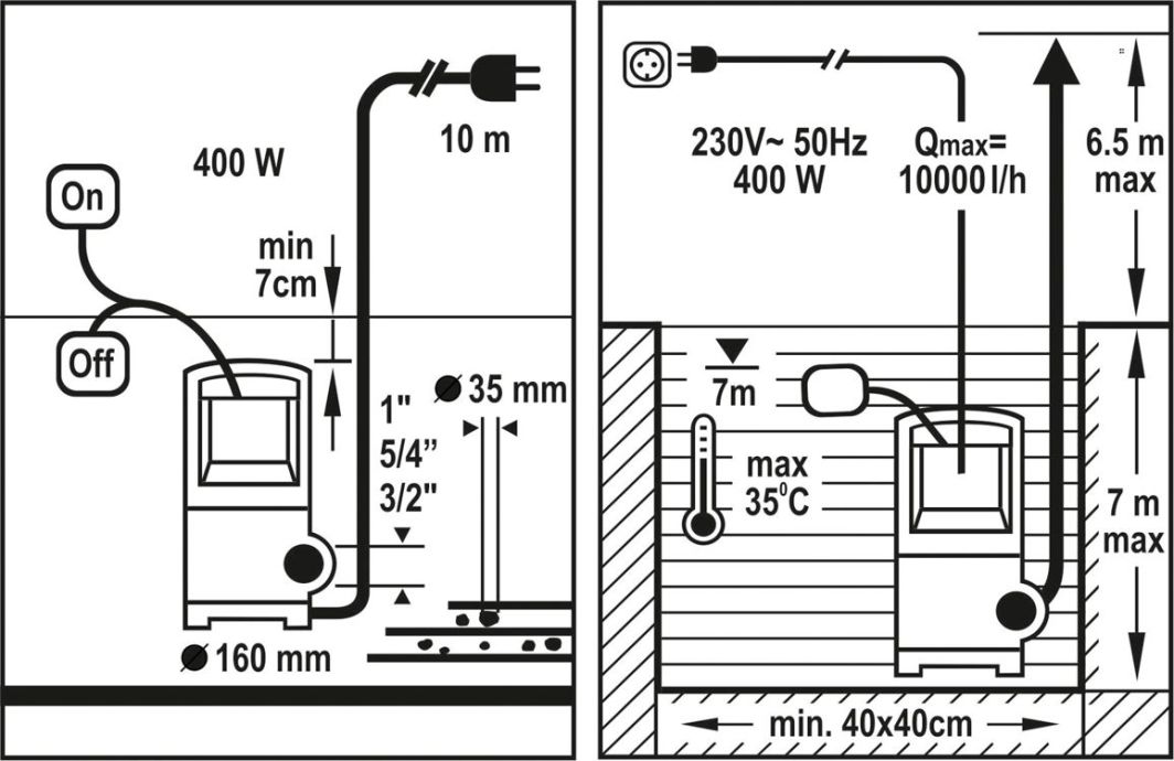 Насос для брудної води FLO 400W (79771) Максимальна висота підйому [м]: 6,5 Максимальна глибина занурення [м]: 7 Вага нетто [кг]: 2,8 Ступінь захисту [IP]: IP X8 Максимальна ефективність [дм3/год]: 10000 Довжина кабелю [м]: 10 Діаметр підключення: G1, G5/4, G3/2 Поплавковий вимикач: ТАК Максимальний діаметр бруду [мм]: 25 Потужність [Вт]: 400