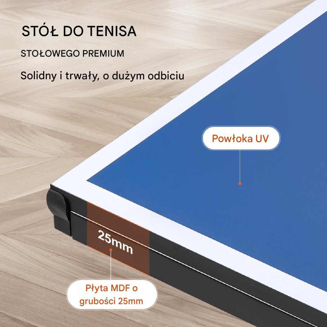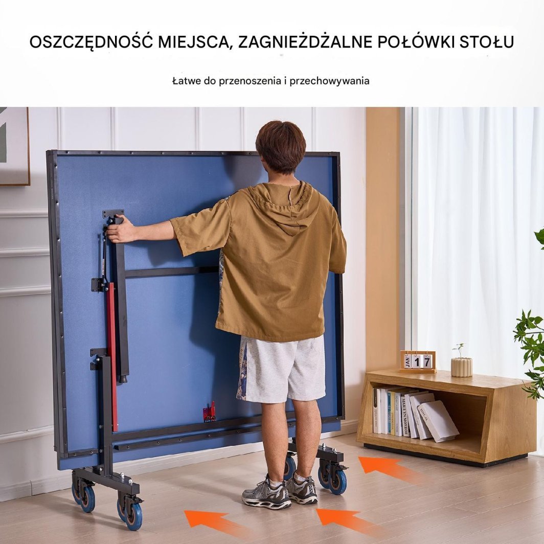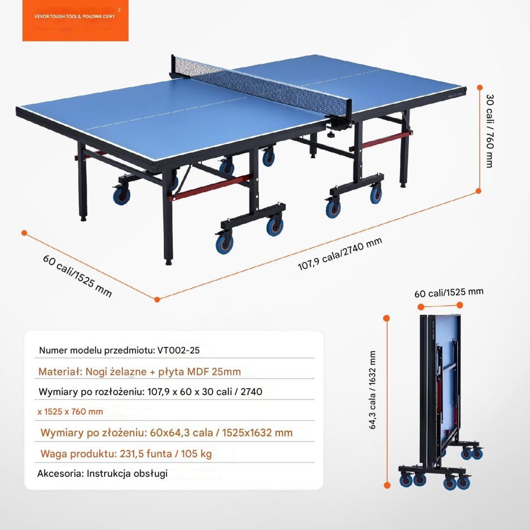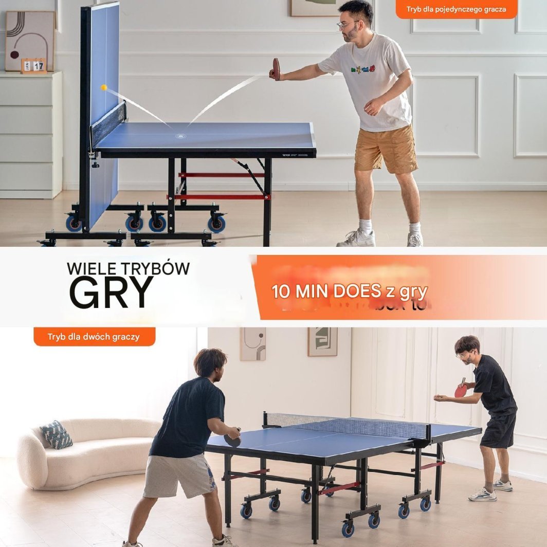 Складаний стіл для настільного тенісу міцний настільний теніс 25 мм сітка для м’ячів Польський дистриб’ютор FV 23% Швидка доставка Ми забезпечуємо післяпродажне обслуговування.Виконуємо замовлення для бюджетних установ.Переваги покупки ➡️ Економія місця: складна конструкція та можливість вертикального зберігання ідеально підходять для обмежених просторів.➡️ Легко переносити: транспортувальні колеса з гальмом забезпечують вільне переміщення та безпечну фіксацію столу.➡️ Професійна якість: міцні матеріали та якість виготовлення забезпечують довговічність і комфорт гри протягом багатьох років, навіть при інтенсивному використанні.➡️ Функція індивідуального тренування: можливість складання однієї половини столу дозволяє виконувати ефективні вправи без напарника.➡️ Миттєво готовий до гри: набір включає сітку та затискачі, що дозволяє швидко почати гру.Чому варто вибрати продукт?Виберіть стіл для настільного тенісу, який перетворить будь-який простір на арену для професійного пінг-понгу.Цей розкладний стіл – це інвестиція в здоров’я, розвиток навичок і незабутні моменти, проведені за активними розвагами.Його функціональність, мобільність і висока якість дозволяють йому відповідати очікуванням навіть найвибагливіших гравців.Не чекайте, отримайте порцію фізичних вправ і азарту вдома вже сьогодні!Опис продукту Кілька режимів гри Стіл для настільного тенісу пропонує різні режими гри, включаючи режим для одного гравця та режим для двох гравців, що дозволяє гнучко адаптуватися до потреб користувача.Тенісний стіл преміум-класу Міцний і міцний стіл з високим відскоком, з УФ-покриттям і плитою МДФ товщиною 25 мм, що забезпечує високу якість гри.Характеристики розмірів Розміри в розкладеному стані становлять 107,9 x 60 x 30 дюймів (2740 x 1525 x 760 мм), що робить його ідеальним для використання у відпочинку та заняттях спортом.Вага продукту становить 231,5 фунтів (105 кг).5-дюймові колеса з фіксатором Для безпеки і стійкості стіл оснащений 5-дюймовими колесами з системою фіксації, що полегшує пересування і забезпечує певну стабільність під час гри.72-дюймова внутрішня сітка в стилі затискачів Дозволяє безпроблемно кріпити, полегшуючи встановлення столу для гри, забезпечуючи оптимальні умови для змагань. Економія місця Стіл легко переміщати та зберігати завдяки складаним полицям, що робить його практичним вибором для різних приміщень.