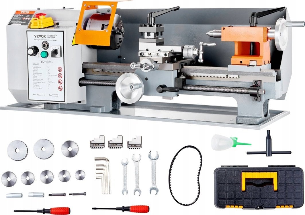 Настільний токарний верстат по металу 500 Вт – ідеальний інструмент для точної обробки. Настільний токарний верстат по металу з розмірами 177,8 х 355,6 мм — чудове рішення для тих, хто шукає інструмент для точної обробки металу.Завдяки своїй універсальності цей пристрій може обробляти різноманітні матеріали, включаючи нержавіючу сталь, залізо та дерево, що робить його ідеальним вибором як для любителів, так і для професіоналів.Ефективний двигун потужністю 500 Вт і міцна чавунна конструкція. Токарний верстат оснащений потужним двигуном 500 Вт, що забезпечує високу ефективність і надійність.Міцний чавунний корпус HT200 гарантує довговічність і стабільність під час роботи, що є вирішальним для отримання високоякісної обробки.4-ступеневе регулювання швидкості Пристрій пропонує функцію 4-ступінчастого безступінчатого регулювання швидкості, що дозволяє гнучко регулювати швидкість шпинделя в діапазоні від 0 до 2200 об/хв.Завдяки інтелектуальному електричному управлінню та цифровому дисплею керування токарним верстатом стає інтуїтивно зрозумілим і точним.Технологія зовнішнього приводу та підвищений крутний момент Токарний верстат використовує сучасну технологію зовнішнього приводу з клиновим ременем, що дозволяє потроїти крутний момент, досягаючи значення 1:9.Ця функція дозволяє легко обертати сталеві прути 45#, що є надзвичайно корисним у багатьох додатках.Висока точність і професійна обробка. Шпиндель задньої бабки оснащений конусом MT2 з технологією швидкої фіксації різьби, що забезпечує легку та зручну роботу.Прецизійна ручка в тримачі задньої бабки дозволяє точніше наточувати метричну різьбу в діапазоні від 0,5 до 2,5 мм як вперед, так і назад, що підвищує якість виконуваної роботи.Технічні характеристики настільного токарного верстата по металу потужністю 500 Вт. Основний матеріал: чавун HT200. Швидкість обертання шпинделя: 0-2200 об/хв. Діаметр наскрізного отвору шпинделя: 20 мм. Конус шпинделя: MT3 Конічний хвостовик: MT2. Потужність двигуна: 500 Вт. Діаметр патрона: φ100 мм. Вага нетто: 49,1 кг. Розміри виробу (Д x Ш x В): 755 x 320 x 300 мм Замовте зараз, щоб насолодитися найкращою продуктивністю!Ідеально підходить для ваших потреб – доступний сьогодні в Morele!