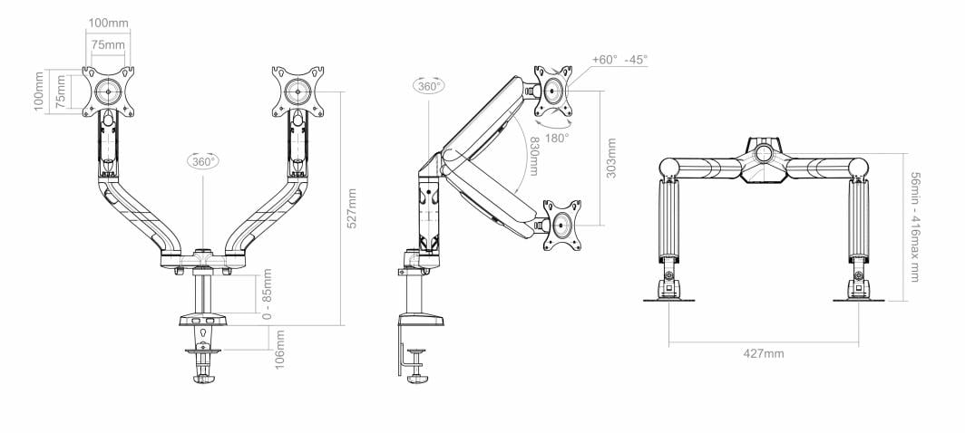 Творча робота Настільний тримач із подвійним екраном — союзник для кожного, хто працює творчо.Можливість встановлення двох моніторів безперечно розширює ваші можливості та дає вам іншу перспективу та попередній перегляд.Якщо вам потрібен доступ до двох веб-сайтів одночасно, а перемикатися між ними громіздко, це рішення саме для вас.Ви можете покращити свою роботу вже сьогодні.Обидві ручки на 100% мобільні, ідеально підходять для щоденного використання, як під час роботи в офісі, так і під час комп’ютерних ігор.Ви графічний дизайнер, дизайнер чи копірайтер?Ця ідея вам точно сподобається, ви подивитеся на свій проект зовсім з іншого боку.Охайність на роботі Ніщо так не покращує якість роботи, як прибраний стіл.Завдяки моніторам, встановленим на кронштейнах, у вас більше місця на столі.Це допоможе зберегти спокій і порядок.Пристрій надзвичайно непомітний.Він не займає багато місця і практично непомітний.Чорний колір дозволяє зливатися з кольором корпусу монітора.Більше вільного простору зробить ваш стіл набагато краще організованим, все буде на місці та під рукою.Система маскування кабелю також дозволяє краще організувати поверхню.Вам більше не доведеться турбуватися про постійно заплутані кабелі.Завдяки тримачам всі кабелі будуть на своїх місцях.Багато можливостей Ручки мобільні.Ви можете вільно змінювати висоту моніторів.Вони незалежні один від одного, тому при необхідності їх можна залишити на різній висоті.Крім того, функція Pivot дозволяє повертати монітор на 90 градусів, тобто з горизонтального положення у вертикальне і навпаки.Це відкриває неймовірну кількість можливостей.При бажанні один монітор може бути в горизонтальному положенні, а інший у вертикальному.Тепер все залежить від вас, ваших потреб і фантазії.Якщо ви хочете поглянути на свій проект зовсім з іншої точки зору, зараз у вас є шанс.Це рішення покращить вашу роботу та дасть нові ідеї.Відсьогодні ви можете регулювати висоту та кут нахилу відповідно до ваших потреб.Якщо ви висока людина, вам більше не доведеться сутулитися.Екран буде на рівні ваших очей.І все це одним рухом руки.Незважаючи на те, що ручки дуже прості у використанні, вони також дуже стійкі.Один тримач вміщує монітор вагою до 9 кілограмів і не змінить свого положення навіть при легких вібраціях.Дана модель виготовлена ​​з високоякісних матеріалів.Вони надзвичайно міцні та ударостійкі.Не дивно, їхнє завдання — обслуговувати дуже важливий елемент — монітор.Збірка без використання додаткових інструментів Ще однією величезною перевагою цього пристрою є те, що вам не потрібні інструменти для складання.Це дозволить заощадити додаткові кошти при установці цього обладнання.Кріпиться за допомогою хомутів.Ви відчуєте, коли ручка міцно закріплена.Крім того, завдяки газовій пружині ви можете легко змінювати положення і висоту.Одним рухом пальця ви зможете підняти або нахилити монітор.Я не думаю, що це колись було так просто.Пристрій розроблений для найвибагливіших користувачів, які роками шукали рішення, яке б задовольняло їх.Комфорт перед комп’ютером дуже важливий, особливо якщо ви проводите за ним довгі години.Обирайте комфорт та сучасні рішення, і ви неодмінно підвищите якість та ефективність своєї роботи.Для кого?Подвійна ручка призначена для всіх.Якщо через роботу ви проводите довг