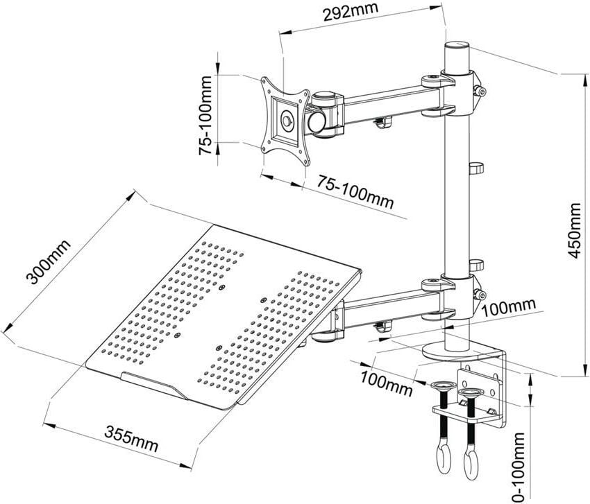 Тримач для монітора та ноутбука Удосконалений настільний тримач ART гарантує найвищий рівень виготовлення, надзвичайну довговічність і безпеку вашого обладнання.L-23 характеризується чудовою якістю та міцною та надійною конструкцією. Крім того, це тримач 2-в-1, який дозволяє повісити монітор і ноутбук на одному тримачі.Завдяки порошковому фарбуванню та елегантному класичному дизайну підійде до будь-якого інтер’єру.Стандарт VESA та підставка для ноутбука Модель L-23 є чудовим вибором для власників моніторів з максимальним розміром 27″ і вагою до 10 кг, які також хочуть встановити ноутбук на тому ж тримачі. Цей тримач має повний діапазон регулювань як для тримача монітора, так і для ноутбука (вправо або вліво, вгору або вниз), а також регулювання висоти. Крім того, подвійний кронштейн для кріплення на столі дозволяє легко кріпити тримача L-23 дозволяє підвісити монітор з кріпленням стандарту VESA 75×75 і 100×100 мм.