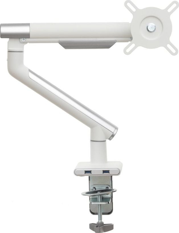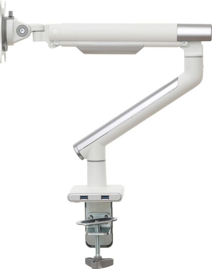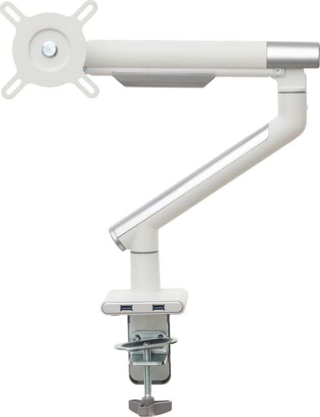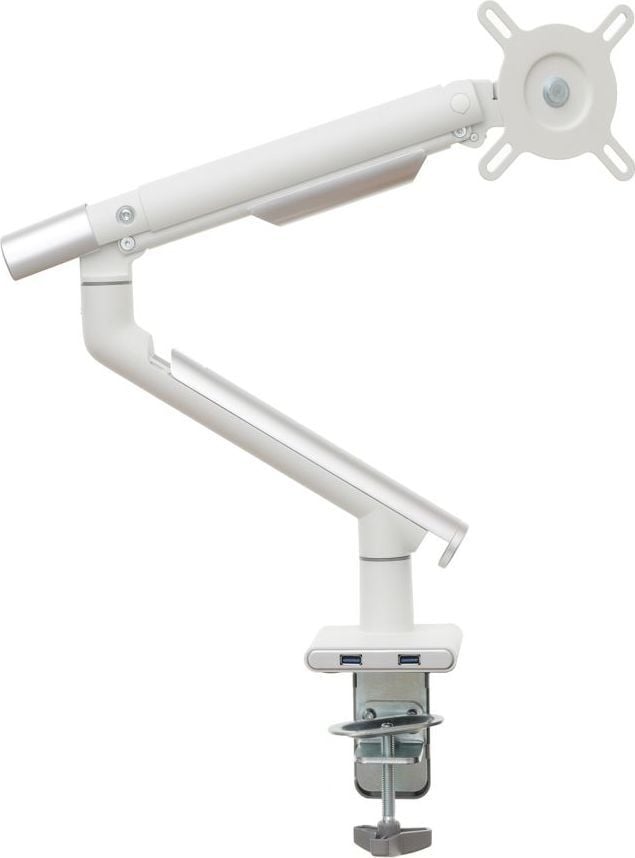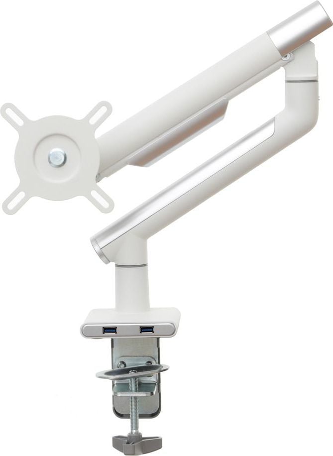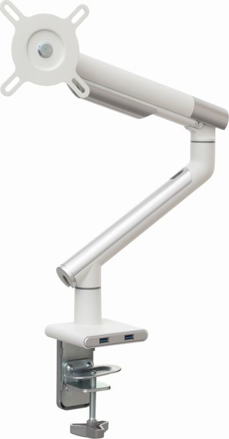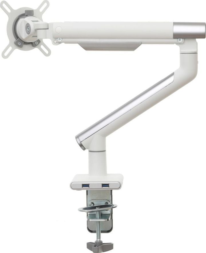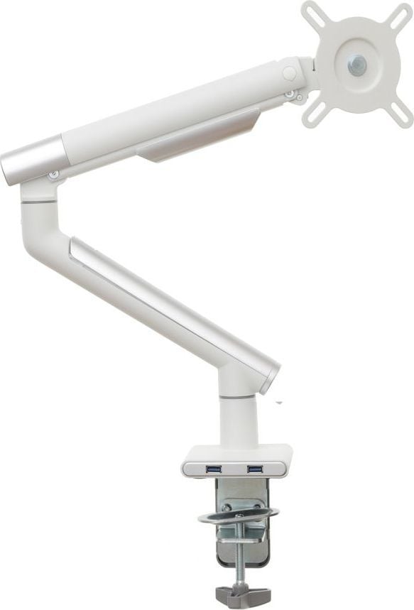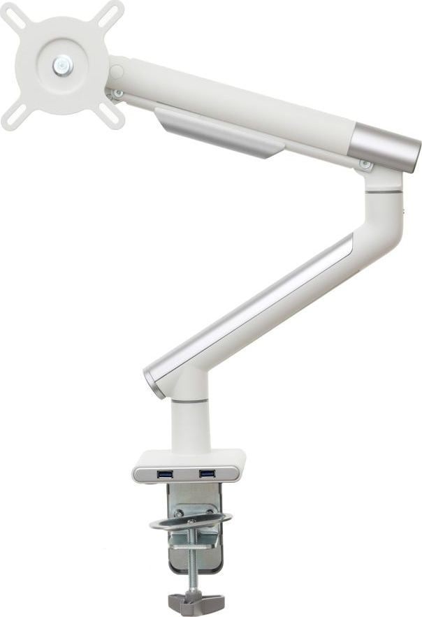 Надійний тримач монітора Удосконалений настільний тримач на газовій пружині гарантує не тільки найвищий рівень виготовлення, але й надзвичайну міцність і безпеку підвішеного на ньому обладнання.Ця модель характеризується відмінною якістю і міцною і міцною конструкцією. Крім того, ви можете легко розмістити на ньому монітор, а ергономічний дизайн ручки означає, що він не займає багато місця на столі.Установку додатково полегшує знімна пластина VESA, а дизайн ручки дозволяє приховати кабелі, тим самим покращуючи порядок і естетичність робочого місця.Зручність і комфорт роботи Вбудована газова пружина, встановлена в ручку, дозволяє вільно і плавно переміщати монітор в будь-якому напрямку навіть одним пальцем.Однак широкий діапазон вертикальних і горизонтальних регулювань, а також можливість регулювання висоти підвищать комфорт використання, а відтак і зручність вашої роботи.Додатковою перевагою є те, що ручка завжди залишається саме на тому місці, яке ви вкажете.Настільне кріплення за стандартом VESA Ця модель є відмінним вибором для власників моніторів з максимальним розміром 32″ і вагою від 2 до 9 кг. Цей тримач має повний діапазон регулювань по горизонталі і вертикалі, при цьому нахил від -40 до +40 градусів, а також регулювання висоти. Цей тримач також оснащений функцією PIVOT, яка дозволяє повертати екран на 360 градусів. Дозволяє повісити монітор, оснащений стандартним кріпленням VESA 75×75 і 100×100 мм.