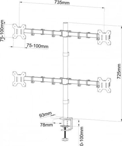 Настільний тримач Art на 4 монітори 13″ – 27″ L-04N (RAMART L-04N)