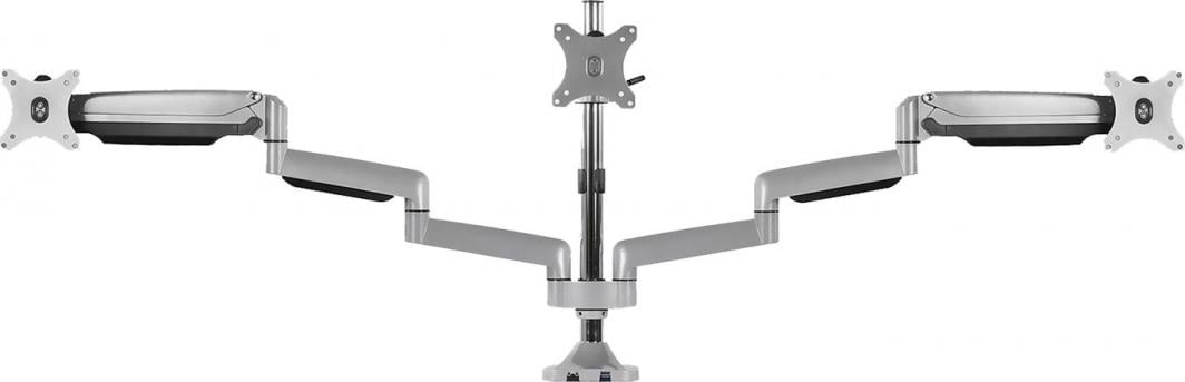 Характеристики виробу: Добре розроблений — тонка й ергономічна форма, виготовлена з алюмінію. Smart Torque Adjust™ — дозволяє підтримувати баланс для моніторів різної ваги USB 3.0 і аудіоінтерфейси, розташовані в основі монітора. Легке керування кабелем™ у корпусі та колонці — дозволяє підтримувати порядок на столі. Доступні як затискні втулки, так і настільні затискачі Для трьох екранів із діагоналлю екрана до 32″ Знімні панелі VESA®, що забезпечують легке встановлення Підтримує стандарти VESA® 75×75 і 100×100