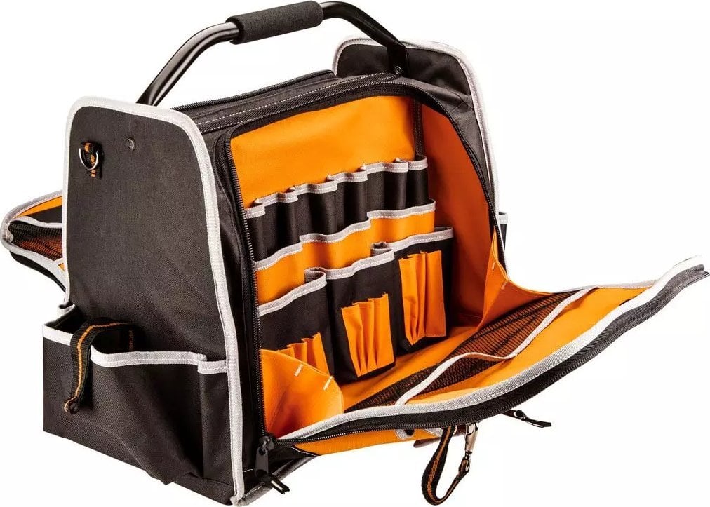 Сумка для інструментів Neo 84-301 Складальна сумка NEO (арт. 84-301) виготовлена ​​з поліестеру 600 D, що гарантує довговічність сумки.Має жорстке дно з підставками для захисту вмісту при роботі в складних умовах.Сумка оснащена міцною ручкою і ремінцем для перенесення.Його великою перевагою є безліч зовнішніх кишень, 12 і 32 внутрішніх.Торгова марка NEO виправдовує очікування професіоналів.
