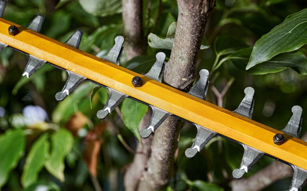 Ножиці для живоплоту DeWalt 54V XR FV – Ефективність і точність у догляді за садом Тример для живоплоту DeWalt DCMHT573 – це чудовий акумуляторний інструмент, який поєднує в собі потужність і ефективність, ідеальний для професійних користувачів.Завдяки сучасному дизайну ці ножиці забезпечують виняткову якість різання, що робить їх незамінним елементом у будь-якому саду.Безщітковий двигун для тривалої роботи Ножиці DeWalt, оснащені безщітковим двигуном постійного струму, забезпечують тривалу роботу та надійність.Завдяки цьому користувачі можуть насолоджуватися ефективною роботою, не турбуючись про часту зарядку акумулятора.Леза довжиною 65 см з відстанню між зубцями 31 мм. Ножиці DCMHT573 мають леза довжиною 65 см, що дозволяє легко і точно зрізати живоплоти та кущі.Відстань між зубцями 31 мм дозволяє різати гілки максимальною товщиною 31 мм, що підвищує універсальність інструменту.Висока частота коливань – 3400 різів за хвилину Частота коливань 3400 за хвилину робить ножиці DeWalt надзвичайно ефективними в роботі.Завдяки цьому користувачі можуть швидко та ефективно обрізати рослини, що значно прискорює процес догляду за садом.Технічні характеристики ножиць для живої кущі DeWalt DCMHT573 Бренд: DeWalt Код виробника: DCMHT573N Вага виробу з індивідуальною упаковкою: 5,500 кг Живлення: електричний акумулятор Максимальна товщина зрізаної гілки: 31 мм Напруга акумулятора: 54,00 В Ємність акумулятора: 9,00 Ач Вага інструменту: 4,10 кг Частота коливань: 3400/хв Довжина леза: 65 см Серія інструментів: FlexVolt 54V Час роботи: 65 хвилин (9,0 А·год) Відстань між зубами: 31 мм EAN (GTIN): 5035048748473 Замовте зараз, щоб насолоджуватися найкращою ефективністю та якістю різання у своєму саду!