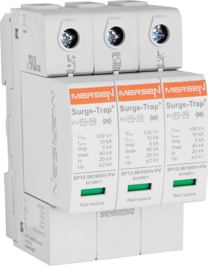 Обмежувач перенапруг постійного струму T1 T2 3P 5kA STPT12-5K1000V-YPV Обмежувач перенапруг MERSEN STPT12-5K1000V-YPV є ідеальним захистом для фотоелектричних установок.Продукт розроблений для роботи з постійним струмом 1000 В і відповідає стандарту EN 61643-11, що підтверджує високий рівень безпеки, який забезпечує блискавкозахист.STP T12 5 — серія комбінованих розрядників типу 1+2/класу I+II, що захищають від впливу струмів блискавки та перенапруги відповідно до стандарту EN/IEC 61643. Підходить як перший рівень захисту в панелях ліній електропередач і в зонах, які піддаються впливу блискавки, захищені системою блискавкозахисту.Розміри Висота приблизно 90 мм Ширина приблизно 54 мм Глибина приблизно 76 мм Загальна інформація Тип струму Максимальна безперервна робоча напруга постійного струму Ucpv 1060 В імпульсний струм (10/350 мкс) 5 кА максимальний струм розряду (8/20 мкс) 40 кА Номінальний струм розряду (8/20 мкс) 20 кА Рівень захисту від напруги До ≤ 4 кВ монтаж на DIN-рейка, вставний тип, конфігурація 3P, матеріал корпусу PA66 CT1;Робоча температура V-0 від -40 до 80 °C Рівень захисту IP IP20 допустимий поперечний переріз ізольованого провідника 6 – 25 мм² допустимий поперечний переріз провідника (дроту) 6 – 35 мм² Візуальні індикатори зносу так зворотний корпус, що забезпечує свободу кабельних з’єднань так механічно кодовані вставки для уникнення помилок під час заміни так стандарти та сертифікати CE, EN/IEC 61643 виробник MERSEN Маркування виробника STPT12-5K1000V-YPV Код EAN 8435297860129