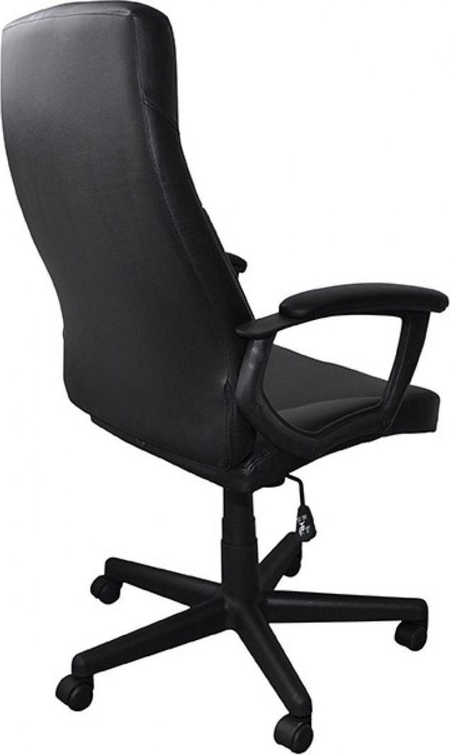 офісне крісло з механізмом НАХИЛУ, можливість вільного розгойдування та фіксації робочого положення, регулювання висоти сидіння в діапазоні: 39-49 см, висота крісла: 101-111 см, зручна та ергономічна спинка з вбудованим підголівником з екошкіри, пластикові підлокітники, сталева основа, рекомендоване максимальне навантаження: 100 кг, ширина сидіння: 50,5 см (у найширшому місці), глибина сидіння: 48 см (у найширшому місці) ширина спинки: 50,5 см (у найширшому місці) висота спинки: 68 см (робоча висота) діаметр основи: прибл. 69 см колір: чорний EAN: 5901503665336