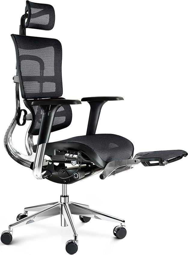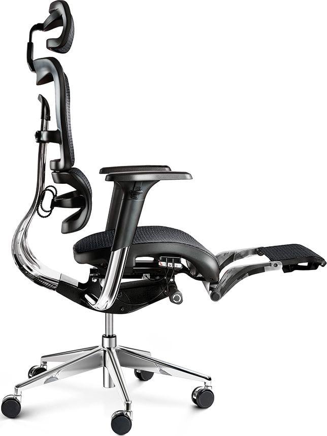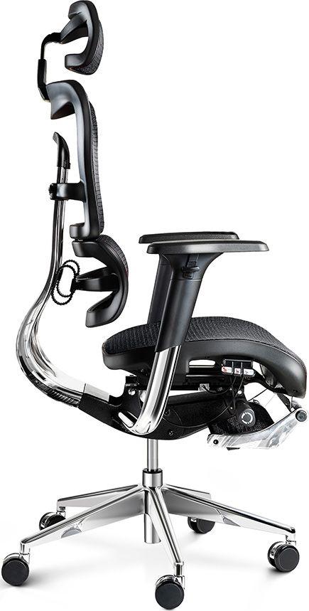 ОФІСНЕ КРІСЛО DIABLO V-MASTER Біле офісне крісло DIABLO V-MASTER з підставкою для ніг – це стильне поєднання елегантної бізнес-класики та сучасного зручного дизайну.Чорний і сірий відмінно виглядають в приміщеннях зі світлими тонами і як контрастний елемент в облаштуванні офісного приміщення.Крісло DIABLO V-MASTER також забезпечує високий рівень ергономіки, що означає зручність, високий комфорт роботи та здорове положення за столом.Представлена ​​модель ідеально підходить для офісів, навчальних кімнат, архітектурних студій і конференц-залів.ДІЛОВИЙ МІНІМАЛІЗМ Офісне крісло DIABLO V-MASTER вирізняється позачасовим мінімалізмом, який завжди вписується в мінливі тенденції.Елегантна чорна, ажурна текстура матеріалу спинки і тонкий силует крісла надають йому виняткової легкості.Чорні рами, підлокітники та колеса, а також срібляста основа ефектно порушують однорідний білий колір.Висока якість матеріалів та виготовлення крісла забезпечує престижний візуальний ефект.ЗДОРОВА СПИНА ТА КОМФОРТ ПРАЦІ Неправильне положення перед екраном комп’ютера та багатогодинна робота за робочим столом часто спричиняють біль у спині та голову, мікротравми хребта та навіть тиск на внутрішні органи.Однією з найважливіших причин є неправильно розташоване та профільоване крісло.Саме тому ми оснастили офісне крісло DIABLO V-MASTER рішеннями, які гарантують високий комфорт, стабілізують положення та ефективно захищають хребет.Функціональні можливості офісного крісла DIABLO V-MASTER: – регульований підголівник, що забезпечує комфортну роботу, стабілізує шию та забезпечує підтримку шийного відділу хребта;- регульоване сидіння (вгору-вниз і спереду-назад): дозволяє ідеально регулювати висоту та нахил сидіння відповідно до висоти та висоти столу;-регулювання сидіння додатково дозволяє нахиляти спинку або спинку разом із сидінням;-регульована спинка дозволяє регулювати кут нахилу під індивідуальні переваги;-регульовані підлокітники (вправо-вліво, вгору-вниз, спереду-назад) гарантують міцну основу для передпліч, зручність роботи та правильне положення;- підставка для ніг допомагає сформувати правильне положення і дозволяє відпочити ногам і стопам під час багатогодинної роботи.ДОДАТКОВА ІНФОРМАЦІЯ Додатковою перевагою офісного крісла DIABLO V-MASTER є гумові колеса, які забезпечують мобільність і захищають підлогу від подряпин.