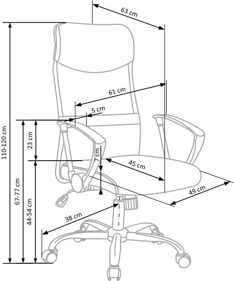 Поворотне крісло VIRE Шукаєте настільний стілець, який забезпечить високий рівень комфорту та зручності та забезпечить належні умови праці?Ви потрапили в потрібне місце!Представлене поворотне крісло VIRE – це поєднання практичності та функціональності, яке виправдає всі ваші очікування та неодмінно сподобається навіть найвимогливішим клієнтам.М’яке сидіння виготовлено з товстого шару оббивного поролону та покрито естетичною приємною на дотик мембранною тканиною.Матеріал, з якого виготовлена профільована спинка, – повітряна сітка з мікрофібри.Його властивості неодмінно оцінять у літні дні.Комфортне офісне крісло також оснащене фігурними, злегка нахиленими підлокітниками, на які можна вільно спиратися руками, розвантажуючи м’язи рук і плечей.Величезною перевагою даного поворотного крісла також є механізм НАХИЛУ, який дозволяє зафіксувати крісло у вертикальному положенні (оптимально для роботи), можливість вільного нахилу спинки назад, що дозволяє приємно погойдуватися, регулювати висоту сидіння та обертатися на 360°.Побалуйте себе подарунком і оберіть це сучасне обертове крісло вже сьогодні!Запевняємо, що це буде дуже вдале рішення, яке вплине на декор вашої квартири та комфорт використання.Механізм НАХИЛУ дозволяє: Фіксувати крісло у вертикальному положенні (оптимально для роботи) Можливість вільного нахилу спинки назад, відпускаючи фіксатор, що забезпечує приємне погойдування Регулювання висоти сидіння та поворот на 360° м
