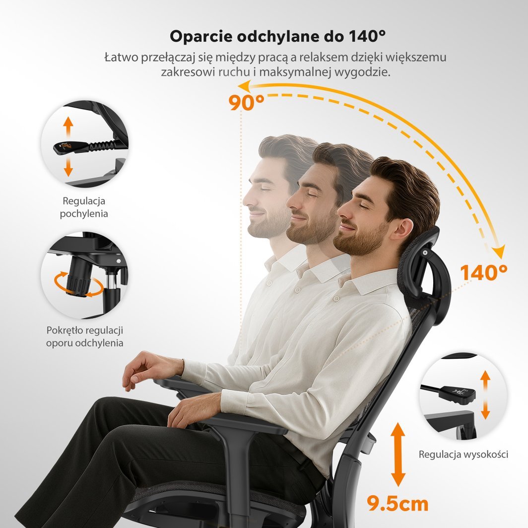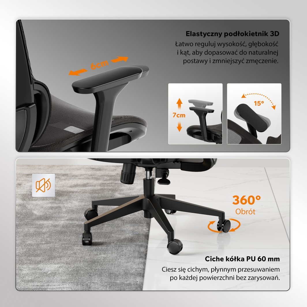 Офісне крісло NEYO SENSE 7 NEYO – створено з думкою про вас. Ергономічне крісло Neyo – ідеальне рішення для людей, які цінують комфорт і функціональність – воно добре працюватиме під час роботи, навчання та відпочинку.Завдяки сучасному дизайну та продуманій конструкції він адаптується до тіла, підтримує правильну поставу та знижує втому.Дихаюча сітка забезпечує легкість і відмінну вентиляцію, а підголівник і висока спинка гарантують підтримку хребта.Газова стійка класу 3 дозволяє безпечно регулювати висоту, що робить Neyo чудовим вибором для довгих годин роботи за вашим столом.Крісло NEYO – ідеально підходить для ваших потреб. Крісло Neyo пропонує регульований кут нахилу спинки в діапазоні 90°-140°, що забезпечує плавний перехід від роботи до відпочинку.Синхронний механізм регулює рух спинки до спинки, а регулювання висоти сидіння (43-52 см), опору нахилу і фіксації положення дозволяє точно підлаштувати налаштування під користувача.Стійка конструкція та широка основа забезпечують безпеку та комфорт у будь-якому положенні.Практичність і легкість завдяки оббивці з поролону. Сидіння та спинка крісла Neyo виготовлені з високоякісної сітки, яка забезпечує чудову циркуляцію повітря, адаптується до форми тіла та підвищує комфорт навіть після багатогодинного використання.Відсутність традиційного поролону забезпечує більшу міцність, стійкість до деформації та легкість очищення, а сучасний зовнішній вигляд та зносостійкість гарантують, що крісло залишатиметься естетичним та функціональним протягом тривалого часу.Механізми в SENSE7 NEYO, які вплинуть на ваш комфорт!Крісло Neyo пропонує 3D регульовані підлокітники (висота, глибина, кут нахилу), регульований підголівник (6 см) і сидіння з діапазоном висоти 43-52,5 см, що дозволяє ідеально підлаштуватися під фігуру і положення користувача.Синхронний механізм із багатопозиційним фіксатором і поворотна основа на 360° забезпечують ергономічну підтримку, комфорт і свободу рухів як під час роботи, так і під час відпочинку.Чудова довговічність завдяки якісним матеріалам SENSE7. Крісло Neyo поєднує мінімалістичний дизайн із міцною конструкцією з металу та нейлону, що забезпечує довговічність та надійність протягом багатьох років.Завдяки вантажопідйомності до 140 кг, газовому приводу класу 3 і розмірам сидіння 50 × 50 см, він пропонує комфорт і стабільність для користувачів з різними формами тіла.Регульована висота (111-123,5 см) і легка конструкція (15,6 кг) дозволяють легко адаптуватися до різних приміщень, що робить його практичним рішенням для роботи та відпочинку.Назва моделі: Neyo Розміри: Загальна висота: 111-120,5 см Ширина сидіння: 50 см Глибина сидіння: 46 см Вага: 15,6 кг Максимальне навантаження: 140 кг Оббивка: сітка Колір: чорний Підйом: Тип: газовий клас: 3 Основа: П’ятиспицевий нейлон Колеса: діаметр: 60 мм Матеріал: нейлон Регулювання підлокітників: вгору-вниз лівий-правий передній-задній