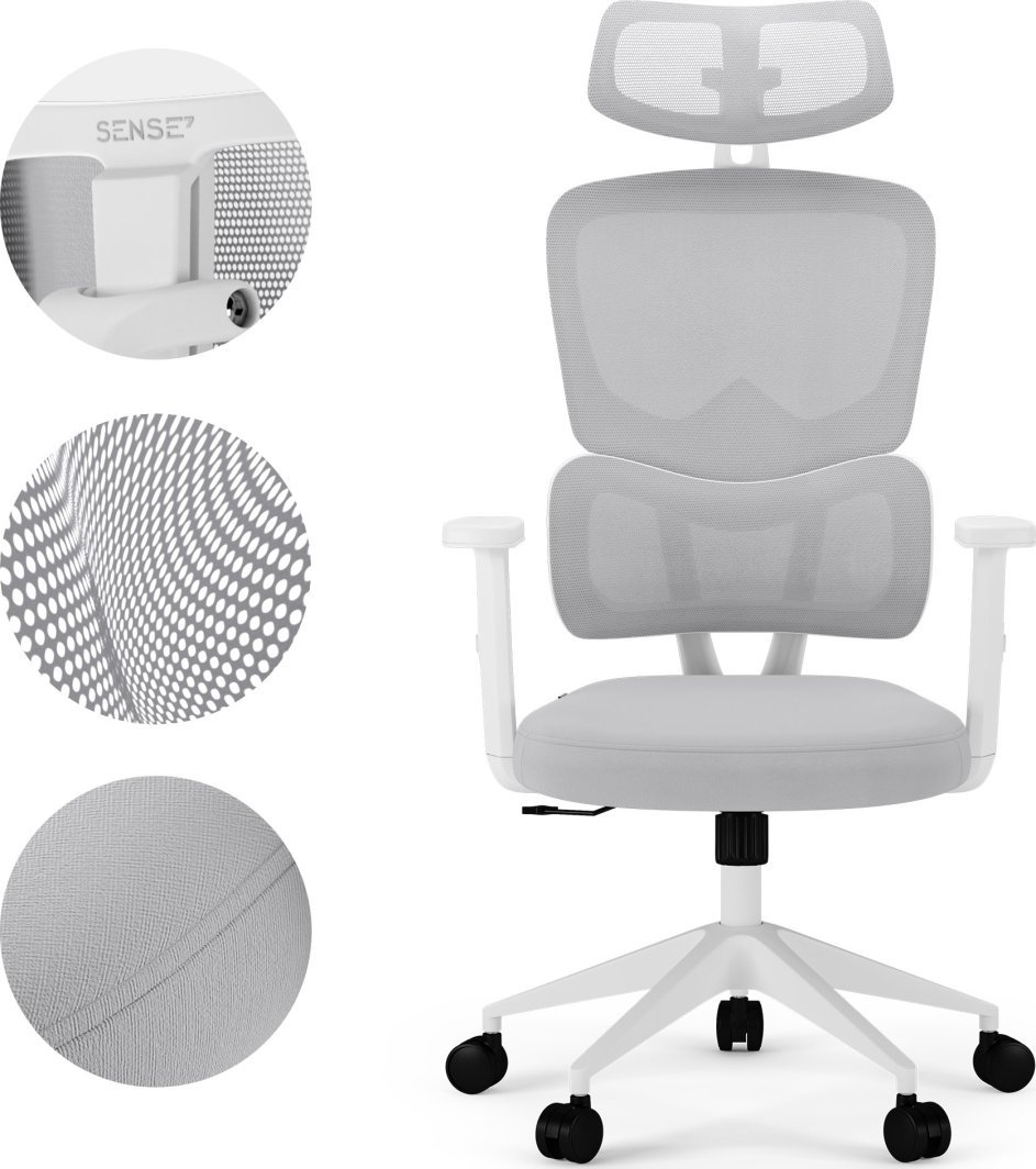 ПОВНИЙ КОМФОРТ КОЖНОГО ДНЯ ОФІСНЕ КРІСЛО SENSE 7 VENO Відкрийте для себе найвищий рівень комфорту з офісним кріслом SENSE7 VENO, яке поєднує мінімалістичний сучасний дизайн із найвищою функціональністю.Його м’яке та зручне сидіння не тільки забезпечує винятковий комфорт, але й додає стилю вашому інтер’єру, створюючи ідеальне місце для роботи та відпочинку.Виготовлене з матеріалів найвищої якості, крісло VENO є зносостійким і легко миється.Завдяки використанню вентильованої сітки на спинці це крісло є не тільки дизайнерським, але й дуже практичним вибором, що забезпечує чудову циркуляцію повітря.SENSE7 VENO – це гарантія комфорту щодня – незалежно від того, скільки часу ви працюєте за своїм столом.ПІДТРИМКА ШИЇ Сидіння розроблено для повної підтримки шиї завдяки регульованому підголівнику, який можна регулювати як вертикально, так і під кутом.Насолоджуйтеся зручною підтримкою під час довгих і коротких сесій за столом завдяки широким можливостям регулювання в двох площинах!СТІЙКІСТЬ ТА ДОВГОВІЧНІСТЬ Міцна основа крісла SENSE7 VENO з п’ятьма гілками, оснащена колесами діаметром 60 мм, забезпечує плавне і безпроблемне пересування.Крім того, ви можете точно відрегулювати висоту сидіння в діапазоні 44-54 см. SENSE7 VENO є синонімом стабільності та довговічності.ПОПІКУЙТЕ ПРО ПРАВИЛЬНУ ПОСТАВУ Крісло SENSE7 VENO забезпечує виняткову ергономічність завдяки регульованим підлокітникам, які можна регулювати вгору та вниз на 7 см. Таке рішення дозволить підтримувати правильну поставу за столом, що важливо для здоров’я хребта та загального комфорту під час роботи.Сядьте зручно на крісло, повністю адаптоване під вас!Крісло SENSE7 VENO – відмінний вибір для тих, хто цінує комфорт і ергономічність.Завдяки широкому діапазону регулювань це крісло можна ідеально підлаштувати під ваші індивідуальні потреби.Регульований підголівник забезпечує підтримку шиї, а можливість регулювання його висоти та кута дозволяє оптимально розташувати під час роботи.Регульоване по висоті сидіння в діапазоні 44-54 см і підлокітники з регулюванням вгору-вниз в діапазоні 61-68 см забезпечують комфорт користувачам зростом до 180 см і вагою до 130 кг.Двокомпонентна профільована опора для спини забезпечує правильну поставу, мінімізуючи ризик болю в спині навіть під час тривалого сидіння.Широке сидіння розміром 67 см забезпечує комфорт і стабільність.Вибираючи крісло SENSE7 VENO, ви інвестуєте у своє здоров’я та комфорт, створюєте ідеальні умови для ефективної роботи та відпочинку.ОБЕРІТЬ ПРАКТИЧНЕ РІШЕННЯ Крісло SENSE7 VENO оснащене спинкою з міцної сітки, яка забезпечує чудову циркуляцію повітря.Це ідеальне рішення для спекотних днів, запобігаючи надмірному потовиділенню.Двокомпонентні профільовані елементи спинки гарантують стабільну та зручну підтримку спини, адаптуючись до природних вигинів хребта.Завдяки цьому ви можете насолоджуватися комфортом і свіжістю протягом усього робочого дня.ГУМА БЕЗПЕЧНА ДЛЯ ПІДЛОГИ Крісло SENSE7 VENO має великі тихі колеса з гумовим покриттям, які захищають вашу підлогу від подряпин.Завдяки чудовій адгезії та плавному переміщенню по будь-якій поверхні ви можете вільно пересуватися по кімнаті, не боячись пошкодити.Нейлонові колеса, вкриті гумою, забезпечують не тільки тиху роботу, але й довговічність, що робить їх ідеальним вибором для будь-якого інтер’єру.КОМ