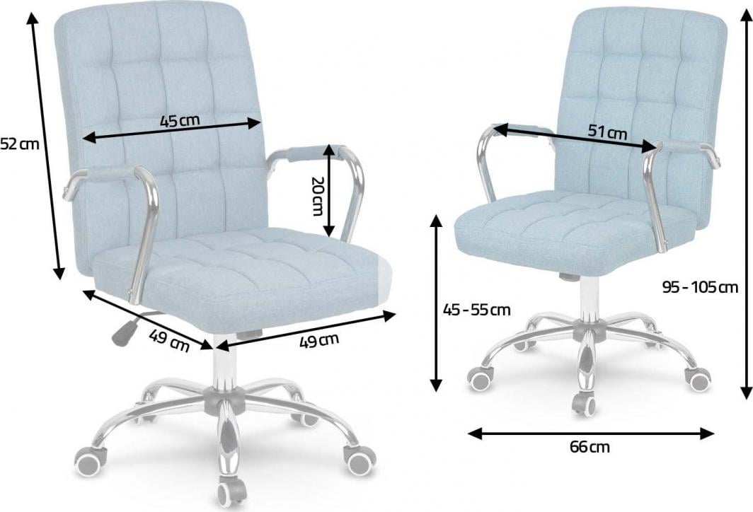Внесіть стиль у свій офіс. Познайомтеся з найновішою моделлю крісел від експерта з офісного комфорту.Стілець Benton+ настільки зручний, що ви більше ніколи не захочете сидіти в іншому кріслі.Sofotel представляє новий дизайн із перевіреними рішеннями.Класична тканина з плетеною структурою була представлена ​​в новій версії, що робить крісло ідеальним для офісів і елегантних конференц-залів.Ваш хребет буде в захваті від цього крісла. Спинка має ергономічну форму – вона розроблена таким чином, щоб хребет страждав якомога менше.Контурна спинка дозволяє комфортно брати участь у багатогодинних зустрічах, не турбуючись про біль у спині.Крісло Benton+ забезпечить робочий комфорт, якого шукає кожен, хто проводить весь робочий день за столом.Крісло, яке швидко адаптується до ваших потреб. Сидіння наповнене гнучкою губкою і покрито міцною тасьмою.Використання матеріалів найвищої якості дозволяє насолоджуватися комфортом крісла протягом багатьох років.Найважливішим елементом стільця є регулювання по висоті, завдяки якому ви можете підлаштувати стілець під свій зріст і висоту столу.Крісло оснащене газліфтом, що дозволяє плавно змінювати висоту.Спинка має механізм, який дозволяє вільно відкидатися на спинку крісла.Це дозволяє розслабитися в кріслі і дотягнутися до предметів, розташованих далі, без необхідності постійно вставати.Надзвичайно спрощений механізм TILT дозволяє швидко зафіксувати крісло в стабільному положенні.Вишуканий дизайн у кожній деталі Крісло Benton+ виділяється модним стьобанням, яке не тільки додає крісла характер, але й підвищує комфорт роботи.Підлокітники в кріслі Benton+ встановлені на оптимальній висоті – досить високо, щоб на них спиралися лікті, і досить низько, щоб вільно ковзати під столом.Завдяки блискавкам чохли підлокітників можна легко зняти та випрати.Основа крісла на п’яти ніжках оснащена подвійними колесами.Це дозволяє швидко і вільно маневрувати без необхідності постійно вставати і повертатися.Ідеальне крісло для конференц-залів. Крісло Benton+ зробить конференц-зал вітриною вашого офісу.Це не тільки стане місцем творчих зустрічей для команди, але й вразить клієнтів.Завдяки високій якості виготовлення крісла Benton+ не тільки чудово виглядають, але й довговічні, тому підходять для корпоративних офісів.Дизайнери вибрали матеріал з плетеною структурою, який дуже популярний в домашніх вітальнях.У поєднанні зі сріблястим покриттям він стає офісним елегантним.Специфікація Колір: синій Розміри упаковки: 86 x 65 x 31 см Оббивка: тканина Механізм: НАХИЛ Нахил з функцією фіксації у вертикальному положенні Регулювання сидіння: плавна зміна висоти Регулювання спинки: нахил Основа: пластик Коліщатка: подвійні