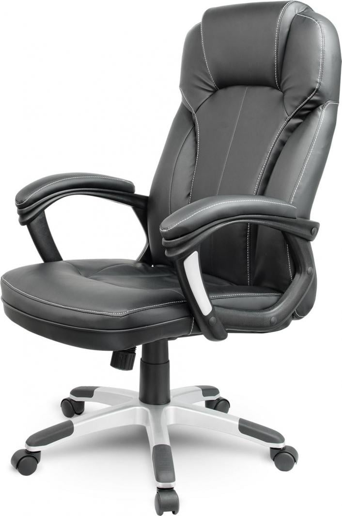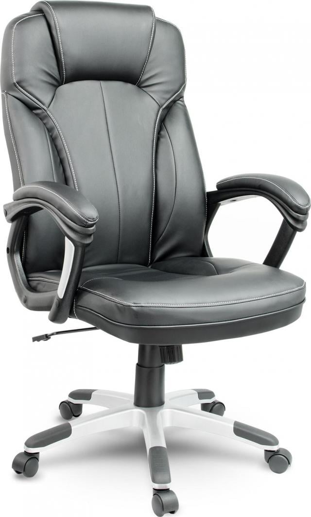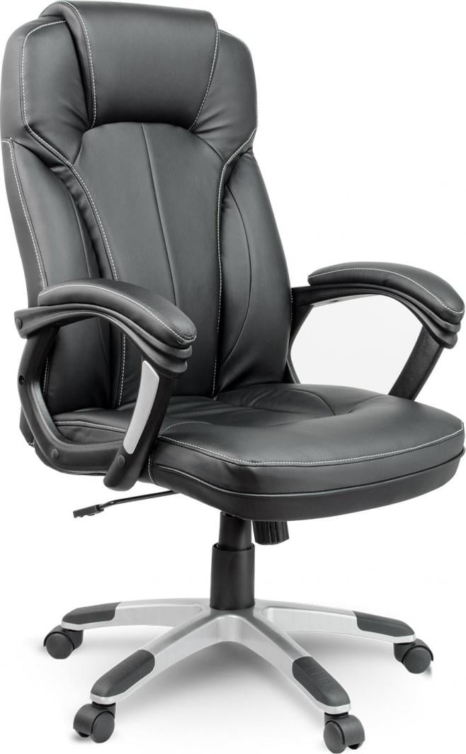Зручне шкіряне поворотне крісло Sofotel.Крісло з високою спинкою з екологічної шкіри.Крісло Eago 2220 захоплює своєю тонкою елегантністю.Оксамитова на дотик екологічна шкіра робить сидіти на ній одне задоволення.Приглушений чорний колір надає кріслу стильного характеру, а його елегантний вигляд підкреслює біла нитка, делікатно включена в оббивку меблів.Кожен елемент офісного крісла Sofotel є результатом досвіду експертів, які впроваджують ергономічні рішення з урахуванням максимального комфорту користувача.Оббивка з екологічної шкіри не тільки приємна на дотик, але також м’яка і зручна, завдяки чому ваше тіло буде відпочивати під час роботи.Дизайн Офісне крісло в гарному стилі відразу приверне увагу, і ми вже можемо побачити його в нашому офісі своєю уявою.Ми ставимося до офісу – нашого щоденного робочого місця – як до вітрини, тому зовнішній вигляд меблів так само важливий, як і їх функціональність.Ергономіка Всупереч видимості та поширеній думці про офісну роботу, вона, як і фізична робота, обтяжує наше здоров’я.Перебування в неприродній позі більшу частину дня може викликати біль у шиї, м’язах і хребті.Тому необхідно організувати робоче місце таким чином, щоб робоче місце відповідало всім вимогам ергономіки, тобто науки про адаптацію робочого середовища до потреб людини, як фізичних, так і психічних.Тільки ергономічні офісні крісла можуть позбавити нас хвилюватися про своє здоров’я.Елементи цього предмета меблів, які є обов’язковими в кожному офісі і яким варто приділити особливу увагу, – це, перш за все, спинка, сидіння та підлокітники, які зручні для рук.Якщо ви також дбаєте про комфорт роботи, більшу ефективність і кращу концентрацію, виберіть зручний і ергономічний поворотний стілець.Це безцінна перевага добре облаштованого офісу.Переваги крісла: м’яка екошкіра, оббивка, м’які підлокітники, функція гойдання з замком, сучасний дизайн, міцна основа, подвійні коліщатка. Конструкція крісла: інтегрований підголівник забезпечить відпочинок для м’язів шиї, товста, широка, злегка профільована спинка комфортно заспокоїть вашу спину, міцні пластикові підлокітники, стійкі до подряпин і ударів, додатково оббиті м’якою еко-шкірою, відповідне широке і глибоке сидіння забезпечить комфорт під час багатогодинної роботи TILT механізм гойдання з можливістю фіксації спинки у вертикальному положенні газліфт забезпечує плавне регулювання висоти сидіння міцна пластикова основа з чорними підніжками подвійні коліщатка Розміри крісла загальна висота 124 ширина 62 см ширина сидіння 54 см висота сидіння 47-57 см глибина сидіння 50 см
