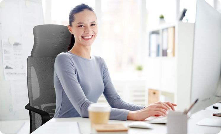 Офісне крісло Sofatel з мікросіткою Praga – сірий Офісне крісло Praga розроблено для людей, які цінують комфорт і сучасний стиль.Основні характеристики: дихаюча оббивка з мікросітки, регулювання кута нахилу спинки, регулювання висоти сидіння, регулювання підголівника, подвійні прогумовані колеса.Розміри крісла максимальна загальна висота: 128 см загальна ширина: 64 см висота спинки: 83 см максимальна висота сидіння: 50 см мінімальна висота сидіння: 45 см глибина сидіння: 46 см