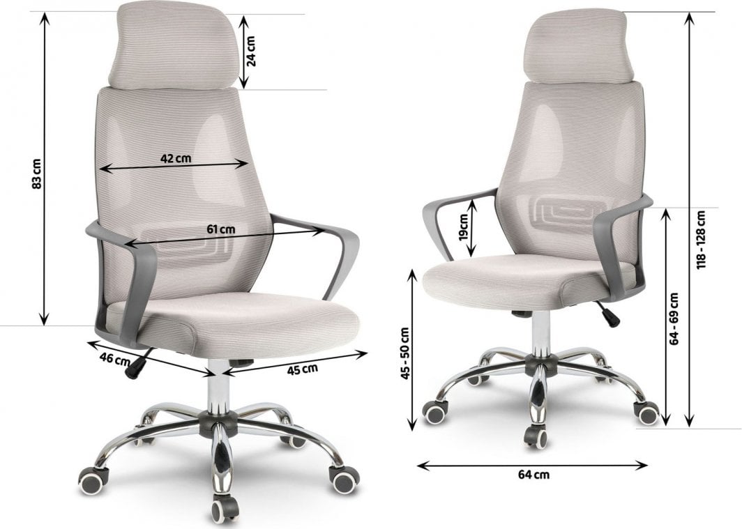 Офісне крісло в сучасному стилі. Офісне крісло Praga створене для людей, які цінують комфорт і сучасний стиль.Основні характеристики: дихаюча оббивка з мікросітки, регулювання кута нахилу спинки, регулювання висоти сидіння, регулювання підголівника, подвійні прогумовані колеса.Ідеальний для всіх!Унікальний дизайн, комфорт в поєднанні з оригінальним зовнішнім виглядом.Унікальність крісла Praga підкреслюється використанням м’якої та дихаючої мікросітки в поєднанні з сучасним дизайном.Регульований – ви можете налаштувати його під свої потреби!регулювання висоти сидіння регулювання підголівника регулювання нахилу – можливість розгойдування або фіксації крісла у вертикальному положенні Ергономічна форма крісла, досконала до дрібниць, підтримує поперековий відділ регульований підголівник з дихаючої мікросітки стійка, п’ятинога основа Структура крісла: регульований підголівник забезпечить відпочинок для м’язів шиї профільована, висока спинка з повітряної мікросітки міцні пластикові підлокітники, стійкі до подряпин і ударів, середня частина забезпечить підтримку попереку, м’яке сидіння, газліфт забезпечує плавне регулювання висоти сидіння, основа має прогумовані колеса, які не дряпають підлогу. Розміри крісла, максимальна загальна висота: 128 см, загальна ширина: 64 см, висота спинки: 83 см, максимальна висота сидіння: 50 см, мінімальна висота сидіння: 45 см, глибина сидіння: 46 см