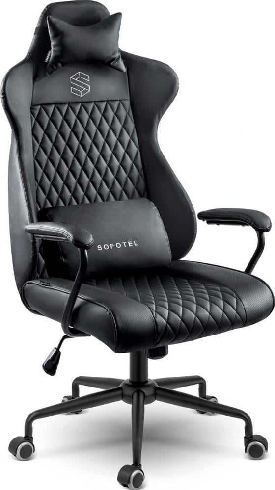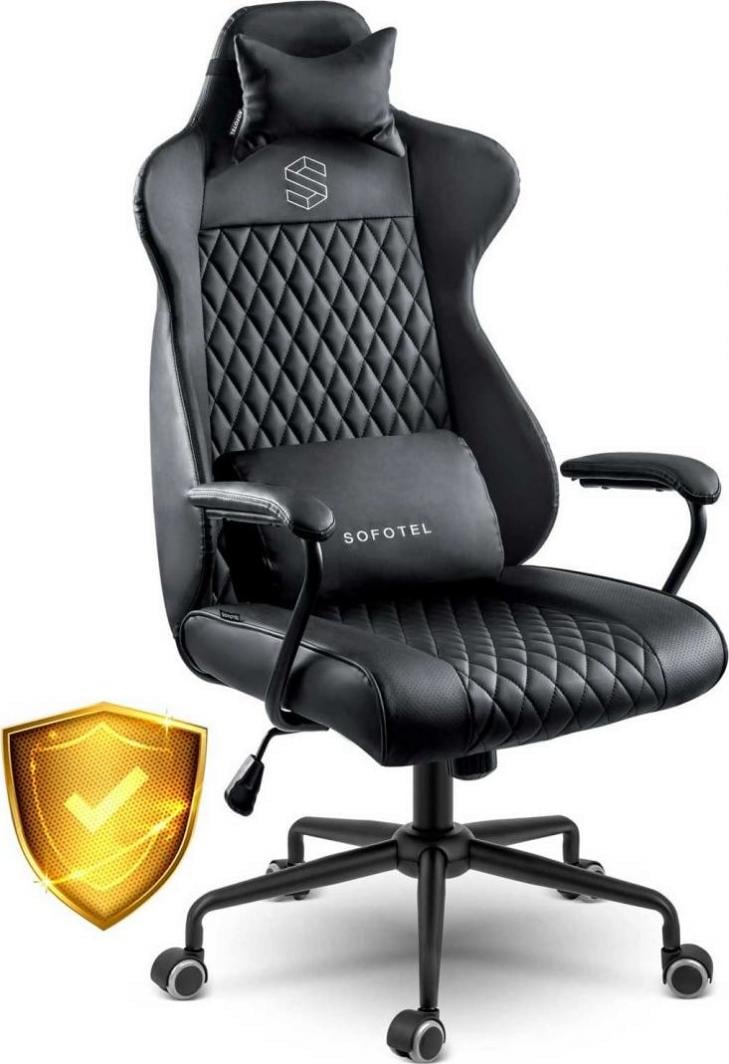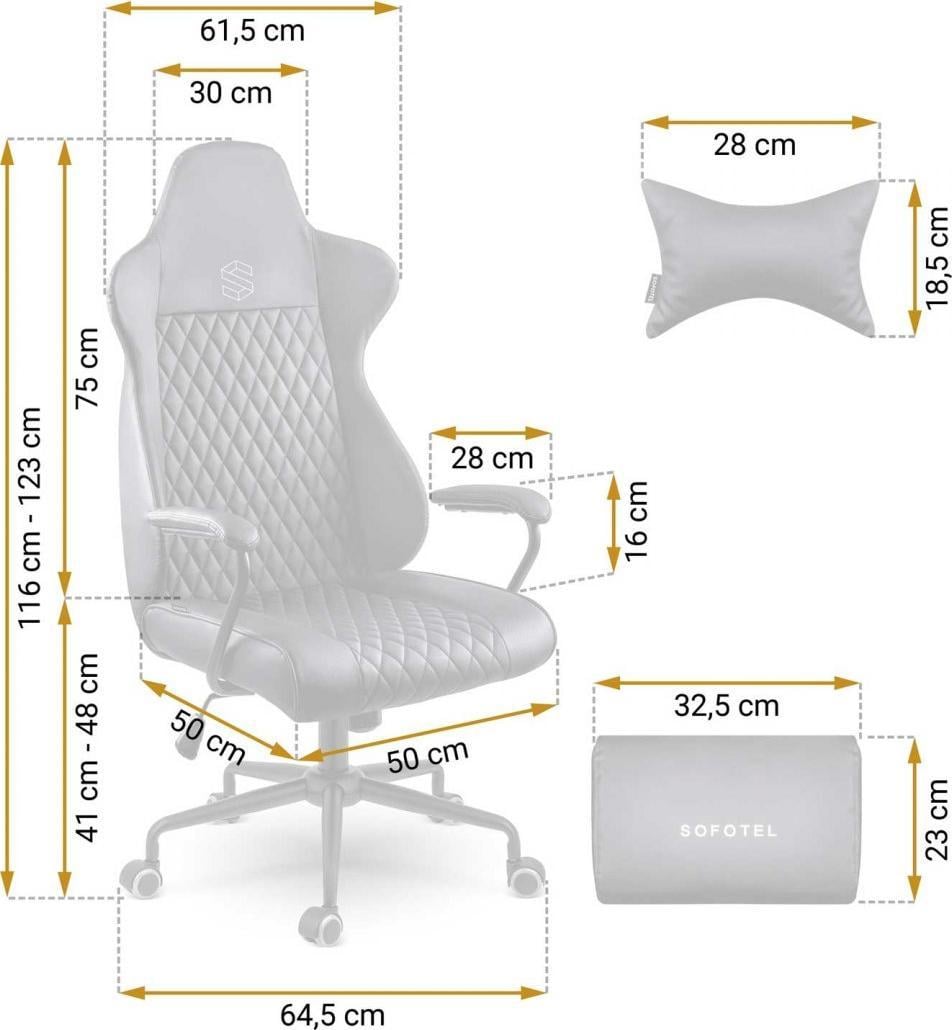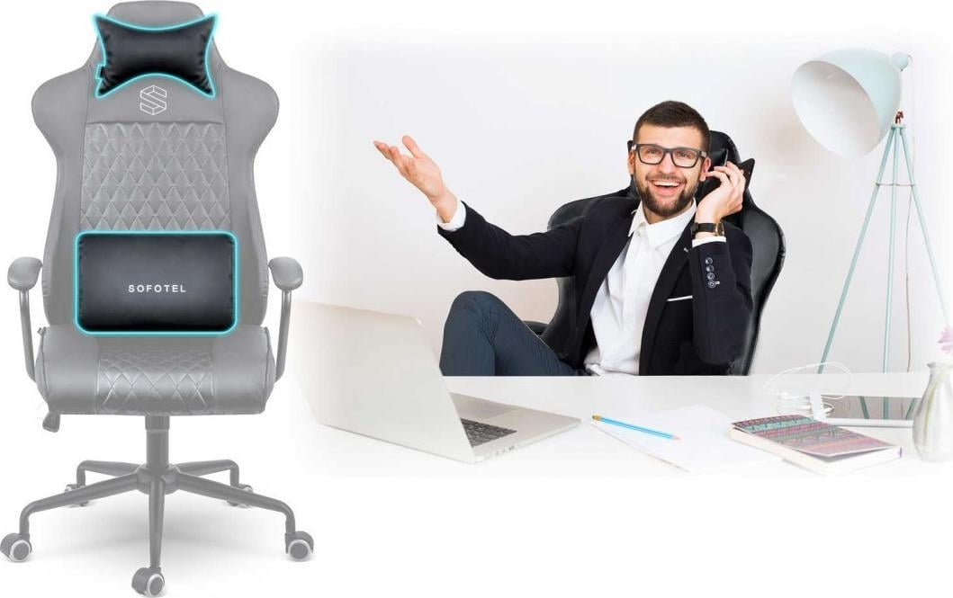 Офісне крісло Sofotel Werona Офісне крісло Werona™ від Sofotel розроблено для людей, які цінують комфорт і красивий дизайн.Назва моделі: Werona™, наповнення сидіння з дихаючої, гнучкої губки для оббивки, регульована висота сидіння – газліфт SoftUp™, подвійні суцільні нейлонові та гумові колеса, зручні підлокітники, покриті м’яким матеріалом, п’ятиспицева поворотна чорна стійка до подряпин основа, функція гойдання SoftSwing™ Ми працюємо з вами вже 10 років, постійно вдосконалюючи асортимент нашої продукції.Sofotel — бренд, який ставить на перше місце якість виготовлення та ергономіку.Крісло Weron, представлене на цьому аукціоні, є поєднанням гарного стилю, чудового дизайну та ергономіки.Воно підійде і як крісло під час роботи чи відпочинку, а також стане прикрасою будь-якого інтер’єру.Завдяки своїй універсальності він стане ідеальним вибором як для дорослих, так і для підлітків.Характеристики та переваги Наше крісло ергономічне, його можна регулювати відповідно до ваших потреб.Правильне регулювання висоти крісла має велике значення для комфорту роботи, тому в моделі Werona™ ми використали міцний підйомник SoftUp™. Технологія SoftSwing™ означає, що ви можете дозволити собі трохи розслабитися в будь-який час!Функції гойдання можна легко заблокувати.З кріслом Werona ви безкоштовно отримаєте дві подушки, які покращать ваше сидіння.Контурна поперекова подушка та подушка для голови допомагають підтримувати ергономічну та безпечну поставу.Подушки адаптуються до форми вашої фігури, забезпечуючи комфорт під час сидіння.Відчуйте себе справжнім CEO!Werona™ – це не тільки ергономіка та висока якість, це також клас та елегантність, це крісло додасть шарму будь-якому простору!Подушки знімаються з чохла завдяки вшитій блискавці, а міцна металева основа оснащена нейлоновими і гумовими коліщатками, які рухаються тихо і не дряпають підлогу.Завдяки винятковій увазі до деталей це крісло стане прикрасою будь-якого інтер’єру.Спинка з міцної стьобаної екошкіри поєднує в собі візуальну легкість і гарантію довговічності.Що більше?подушка для голови з вшитою еластичною стрічкою, що дозволяє регулювати висоту. Логотип, що засвідчує оригінальність виробу. Центральна частина оброблена стьобаною екошкірою міцні підлокітники зі зручною м’якою обробкою контурна подушка для попереку SoftUp™ забезпечує плавне регулювання висоти сидіння Механізм гойдання Soft Swing™ металева основа з прогумованими колесами, які не дряпають підлогу