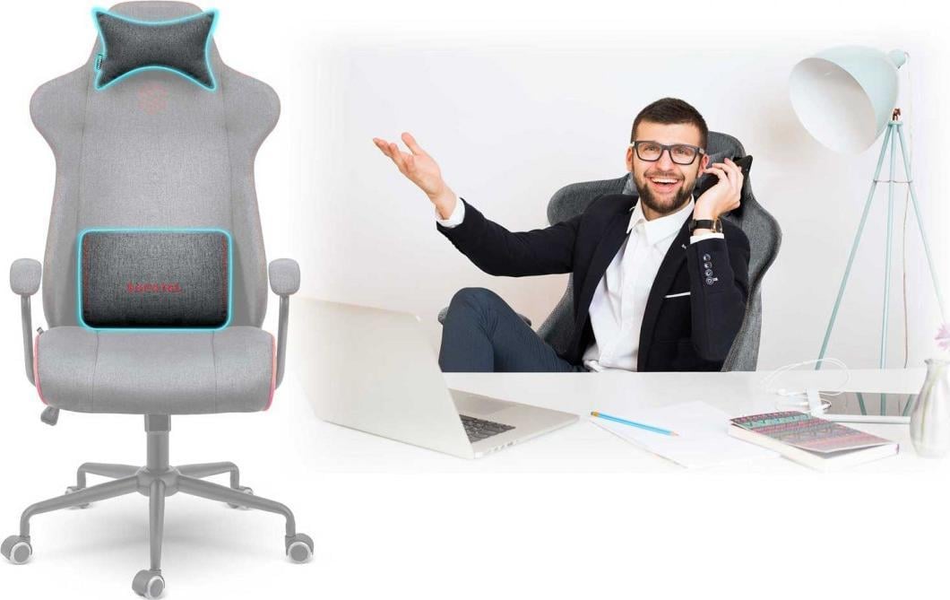Sofotel krzesło biurowe Werona Fotel biurowy Werona™ marki Sofotel został zaprojektowany z myślą o osobach ceniących sobie wygodę oraz piękny design. Nazwa modelu: Werona™, Wypełnienie siedziska z oddychającej , elastycznej gąbki tapicerskiej, Regulowana wysokość siedziska – podnośnik gazowy SoftUp™, Podwójne solidne nylonowo – kauczukowe kółka, Wygodne podłokietniki pokryte miękkim tworzywem, Piecioramienna obrotowa czarna podstawa odporna na zarysowania, Funkcja bujania SoftSwing™ Od 10 lat jesteśmy z Wami, nieustannie rozwijając gamę naszych produktów. Sofotel to marka stawiająca jakość wykonania i ergonomię na pierwszym miejscu. Prezentowany na tej aukcji fotel Werona to połączenie dobrego stylu, świetnego designu i ergonomii. Sprawdzi się zarówno jako fotel w trakcie pracy, jak też odpoczynku, dodatkowo będąc ozdobą każdego wnętrza. Dzięki swemu uniwersalnemu charakterowi, będzie idealnym wyborem zarówno dla dorosłych jak i młodzieży. Cechy i zalety Nasz fotel jest ergonomiczny , dzięki możliwości regulacji dopasujesz go do swoich potrzeb. Odpowiednie ustawienie wysokości fotela ma ogromne znaczenie dla komfortu pracy dlatego w modelu Werona™ zastosowaliśmy wytrzymały podnośnik SoftUp™ Technologia SoftSwing™ sprawia, że w każdej chwili możesz pozwolić sobie na odrobinę relaksu! Funkcje bujania można w prosty sposób zablokować. Do fotela Werona otrzymasz gratis dwie poduszki , które poprawią Twój komfort siedzenia. Wyprofilowana poduszka lędźwiowa oraz poduszka pod głowę pomagają utrzymać ergonomiczną, bezpieczną postawę. Poduszki dopasowują się do kształtu Twojej sylwetki, gwarantując wygodę podczas siedzenia. Poczuj się jak prawdziwy Prezes! Werona™ to nie tylko ergonomia i wysoka jakość, to też klasa i elegancja, ten fotel doda uroku każdej przestrzeni! Poduszki można wyjąć z pokrowca dzięki wszytemu zamkowi, a solidna metalowa podstawa wyposażona jest w nylonowo – kauczukowe kółka , które poruszają się cicho i nie rysują podłogi. Dzięki wyjątkowej dbałości o detal, fotel ten będzie ozdobą każdego wnętrza. Oparcie z wytrzymałego materiału łączy wizualną lekkość z gwarancją trwałości. Co więcej? poduszka pod głowę z wszytą gumką, umożliwiającą regulację wysokości logo świadczące o oryginalności produktu część środkowa wykończona materiałem wytrzymałe podłokietniki z wygodnym miękkim wykończeniem wyprofilowana poduszka lędźwiowa SoftUp™ zapewnia płynną regulację wysokości siedziska Soft Swing™ mechanizm bujania metalowa podstawa z gumowanymi kółkami , które nie rysują podłogi
