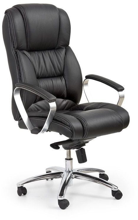Ексклюзивне офісне крісло Halmar FOSTER Виготовлене з матеріалів найвищої якості та розроблене з увагою до кожної, навіть найменшої, деталі.Ексклюзивне офісне крісло Halmar FOSTER відрізняється елегантним зовнішнім виглядом і найвищим рівнем комфорту використання.Функціональність і можливість адаптації моделі FOSTER до потреб використання забезпечує механізм пересування MULTIBLOCK з функцією вибору одного з п’яти робочих положень, регулювання висоти сидіння або налаштування сили опору спинки при нахилі.Розкішний і репрезентативний Розкішний дизайн обертового крісла Halmar FOSTER робить його ідеальним вибором для офісу, а перш за все, робочого кабінету.Спинка та сидіння стільця виготовлені з чорної шкіри та ПВХ.Вони мають елегантні шви, що надає моделі FOSTER ексклюзивного та повністю професійного вигляду.Корпус і підлокітники виготовлені з хромованої сталі.Крісло має п’ять пластикових коліс, які дозволяють переміщати крісло по м’яких поверхнях.Підлокітники оброблені зручними накладками, оббиті чорною шкірою.Міцна конструкція Зовнішній вигляд офісного крісла Halmar FOSTER, безсумнівно, не єдина його перевага.Висока рельєфна спинка забезпечує комфортну роботу і допомагає випрямити тіло, тим самим допомагаючи розвантажити хребет під час роботи в положенні сидячи протягом кількох годин.Руки підтримуються широкими 7-сантиметровими підлокітниками, розташованими на висоті 18 см відносно сидіння.Просторе сидіння в моделі Halmar FOSTER має розміри 51х55х11 см. Загальна глибина крісла 74 см, а ширина 68 см. Найвищий рівень комфорту з механізмом MULTIBLOCK Поворотне крісло Halmar FOSTER оснащене механізмом переміщення MULTIBLOCK, який дозволяє налаштувати крісло під потреби користувача, щоб він міг працювати в найбільш оптимальних умовах.Однією з функцій механізму MULTIBLOCK є можливість регулювання висоти сидіння – у моделі FOSTER в діапазоні 48-55 см. Крім того, механізм MULTIBLOCK дозволяє регулювати опір спинки при нахилі, фіксувати крісло в робочому положенні (на вибір п’ять варіантів), розгойдувати крісло.Він також оснащений функцією Anti-Shock, яка захищає спину користувача від ударів спинки.
