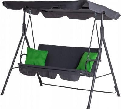 Садові гойдалки з подушками Садові гойдалки мають міцну конструкцію зі сталі з порошковим покриттям.Чудово виглядає в різних стилях відкритих просторів.Крім того, це цікавий спосіб провести час на природі.Лава-гойдалка оснащена навісом з регульованим кутом нахилу і комплектом подушок.Продукт призначений для використання в таких місцях, як сади, тераси, ділянки та інші відкриті місця.Параметри: Загальна ширина: 170 см Загальна глибина: 110 см Загальна висота: 153 см Колір: графіт, зелений Модель: VIP Матеріал: поліестер, сталь Сонцезахисний балдахін з регульованим кутом нахилу Підлокітники Комплект подушок в комплекті Макс.навантаження: 220 кг