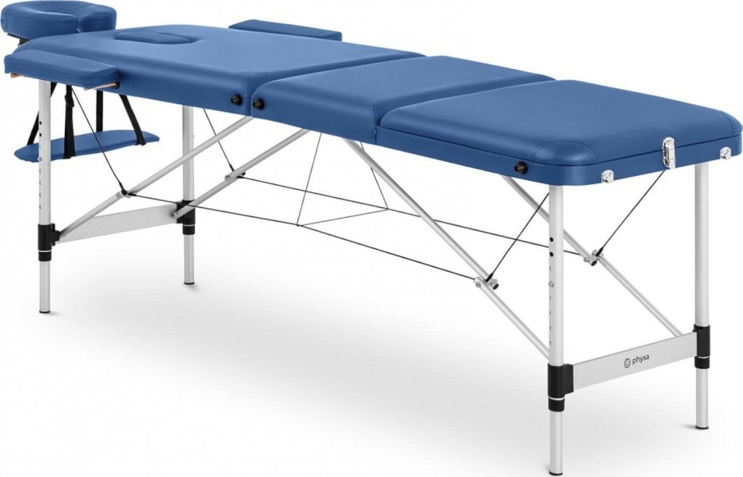 Код виробника: 10040445 Масажне ліжко Physa ідеально підходить для масажних і фізіотерапевтичних кабінетів, салонів краси і ортопедії, SPA & Wallness центрів або тату-студій, а завдяки розкладній конструкції – для відвідування фізіотерапевтами або масажистами клієнтів в офісах або вдома.Розкладне ліжко схоже на валізу з ручками.Конструкція виготовлена з алюмінію, вона легка і міцна, має вантажопідйомність до 180 кг.Висота регулюється в діапазоні 600 – 810 мм.Оббивка має товщину 40 мм, що дозволяє з комфортом проводити ще більш тривалі процедури.Підніжку можна регулювати під різними кутами від 15 до 50 градусів.Підголівник нахиляється вгору і вниз на 45 градусів.Подушка під шию підтримує зручне положення.Підголівник має виріз для голови.Оббивка виконана з приємного на дотик і легко чиститься ПВХ.Чудово переносить вплив води і масел.У комплект входить сумка для зручного транспортування.Характеристики продукту: – Мобільність – складаний стіл за кілька простих кроків, – Міцність – алюмінієва рама з вантажопідйомністю до 180 кг, – Легко миється – ПВХ оббивка, проста в обслуговуванні, – Регулювання – висота та підголівник підлаштовуються під клієнта, – Комфорт – оббивка, підлокітники та лицьовий отвір товщиною 40 мм.Технічні параметри: – Модель – Бордо Червоний – Номер за каталогом – 10040445 – Стан товару – Новий – Колір – Синій – Вага нетто [кг] – 13,3 – Допустиме навантаження [кг] – 180 – Розміри столу/ліжка [см] – 185 x 60 x 60 – 81 – Колір – Синій – Матеріал рами – Алюміній – Розміри сидіння [мм] – 600 x 925 – Регулювання висоти [мм] – 600-810 – Матеріал оббивки – ПВХ – Додаткове обладнання – Знімна подушка та підлокітники, підголівник, полиця, сумка – Розміри спинки [мм] – 600 x 925 – Товщина оббивки [мм] – 40 – Діапазон регулювання кута підніжки [] – 15/25/32/38/45/50 – Діапазон регулювання кута/параметрів підголівника [] – -45~45 – Розміри підголівника [мм] – 270 x 280 x 70 – Розміри (ДxШxВ) [см] – 213,5 x 81 x 70 – Вага [кг] – 13,5 – Транспортні розміри (ДхШхВ) [см] – 94,5 х 18,5 х 66 – Вага в упаковці [кг] – 15,9 У комплект входить: – Масажне ліжко – Сумка для транспортування