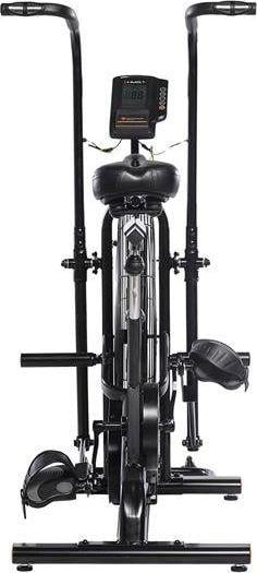 Пневматичний велосипед HMS MP6548 Компанія HMS рада представити пневматичний велосипед MP6548, який уже деякий час є необхідним пристроєм у тренажерному залі та, безсумнівно, у клубі CrossFit.Це революція в кардіотренуваннях і тренуваннях на витривалість, і, що може здатися дивним у випадку звичайних велосипедів, у силових тренуваннях.Залучення всього тіла. Рухливі руки змушують працювати кисті, а це означає, що в тренуванні задіяні не тільки нижні, а й верхні групи м’язів, що в свою чергу робить вправи більш ефективними.Якщо наші тренувальні плани вимагають більшого залучення верхніх груп м’язів, завдяки спеціальним підставкам для ніг можна працювати тільки руками.Поставивши ноги на підніжки, ви отримаєте зручне положення для максимальної роботи рук.Опір повітря Навантаження на велосипед є опором повітря.Принцип роботи цього механізму полягає в тому, що чим швидше і сильніше ми крутимо педалі, тим більше навантаження.Тому цей вид обладнання ідеально підходить для занять кроссфітом.Такі тренування в основному базуються на інтервальних вправах, де ми виконуємо роботу з максимальною інтенсивністю протягом короткого проміжку часу, з відпочинком у формі вправ набагато меншої інтенсивності.Тому це ідеальне рішення для CrossFitters, тому що залежно від того, скільки енергії вони споживають на велосипеді, вони відчуватимуть напругу.Кардіотренажер MP6548 підійде не тільки для силових тренувань, це також чудовий пристрій для кардіо вправ.Він швидко прискорює пульс, залучає все тіло та миттєво підвищує температуру тіла.Останнє також говорить про використання велосипеда для розігріву.Тим більше, що при опорі повітря ми не навантажуємо суглоби.Тож зігріємось швидко та безпечно.Функціональний комп’ютер Коли ми виконуємо важкі тренування, варто стежити за ним і перевіряти, як наше тіло реагує.На допомогу приходить комп’ютер, яким оснащений пристрій.Там ми знайдемо всю необхідну інформацію під час навчання.Міцна конструкція MP6548 виготовлено з матеріалів найвищої якості, що робить його дуже стабільним і безпечним.Навіть під час дуже інтенсивних тренувань не відчувається вібрації та коливання.Транспортні колеса забезпечують легке переміщення обладнання.Бренд HMS подбав і про комфорт тренувань, ергономічне, м’яке сидіння, з регульованою висотою та глибиною, дозволить довго приємно тренуватися.