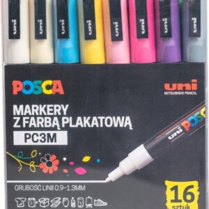 МАРКЕРИ UNI POSCA – НАБІР 10 КОЛЬОРІВ.Товщина лінії письма (мм): 8 мм Маркер Posca дозволяє писати та малювати практично на будь-якій поверхні: папір, порцеляна, тканина, пластик, теракота, скло, метал, дерево;Фарба в маркері POSCA створена на основі плакатної фарби.Він непрозорий, гладкий, густий, рідкої консистенції і має високу покривну здатність.Воно не вбирається в папір і після висихання різні кольори чорнила не змішуються між собою.Використана фарба стійка до світла та погодних умов.Тканини, пофарбовані на водній основі (перед прасуванням прасувати з тильного боку без пари), порцеляна (запекти в духовці 30 хвилин при 120°C або обробити лаком), дерево (захистити лаком), метал (захистити 2-3 шарами лаку), папір (захистити лаком), скло (запекти в духовці 45 хвилин при температурі). 160°C), глина, глина для ліплення, каміння (покрийте малюнок лаком або запікайте в духовці при 220°C), пластик (дайте фарбі висохнути та покрийте лаком).