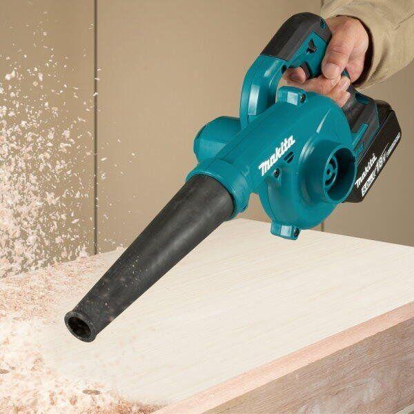 Акумуляторна повітродувка 18 В Технічні характеристики: Напруга живлення: 18 В Тип батареї: Літій-іонна Підтримувані батареї: 1,5 / 2,0 / 3,0 / 4,0 / 5,0 / 6,0 Ач Швидкість.на холостому ходу: 0 – 18000 об/хв Макс. витрата повітря: 3,2 м3/хв Макс. швидкість повітряного потоку: 98 м/с Розміри (загальна довжина): 517 мм Вага (EPTA): 1,6 – 2,1 кг Несумісний з батареями BL1811G, BL1813G, BL1815G (без електроніки) і батареєю BL1815 (18 В / 1,3 Ач) Поставляється без батарей і зарядного пристрою