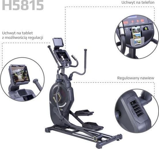 Еліптичний крос-тренажер H5815 HMS PREMIUM є НАПІВКОМЕРЦІЙНИМ обладнанням, тобто підходить для тренувань вдома, а також у невеликих фітнес-клубах.Його найбільшою перевагою є система опору, яка в даному випадку є магнітно-повітряною.Таке рішення забезпечує плавність рухів, чого неможливо зі звичайними еліптичними тренажерами.Крім того, завдяки поєднанню опору повітря, при якому чим швидше рухи, тим більший опір, з класичним магнітним опором, ми отримуємо безмежні можливості підбору обладнання до нашого рівня розвитку.Еліптичний тренажер оснащений сучасним комп’ютером з рідкокристалічним дисплеєм.Елементи керування дуже інтуїтивно зрозумілі та прості.H5815 має загалом 22 вбудовані програми.Кожен користувач, незалежно від рівня підготовки, знайде для себе потрібну програму.Крім того, комп’ютер підраховує і видає всі параметри, необхідні під час навчання.Додатково дана модель оснащена тримачем для мобільного пристрою, тому під час тренувань ми можемо легко використовувати, наприклад, планшет.Модель H5815 – це міцна конструкція, яка, незважаючи на значну вагу, дуже легко пересувається завдяки транспортним колесам.Найякісніші матеріали гарантують безпеку і дозволяють досягти вантажопідйомності до 150 кг.Заняття на еліптичному тренажері дозволяють спалити зайву жирову тканину і покращити кардіореспіраторну форму.Крім того, під час тренування ми знижуємо рівень кортизолу в крові, тобто гормону стресу, і виробляємо велику дозу серотоніну, тобто гормону щастя.Простіше кажучи, регулярні заняття спортом значно покращать наше самопочуття.Специфікація: Комп’ютер (вимірювання): час: так відстань: так швидкість: так пульс: так обертів: так жирові відкладення: так калорії: так Додаткове обладнання: датчики пульсу: так місце для мобільного пристрою: так ролики або транспортувальні колеса: так Розміри еліптичного тренажера (в розкладеному вигляді): довжина (мм): 1620 ширина (мм): 710 Висота (мм): 1840 Довжина кроку (мм): 500 Комп’ютер (функції): HRC: так WATT: так Загальна кількість програм: 22 RECOVERY: так Вбудовані навчальні програми: так Кількість вбудованих тренувальних програм: 12 індивідуальних тренувальних програм: так Кількість індивідуальних тренувальних програм: 4 Живлення: 240В